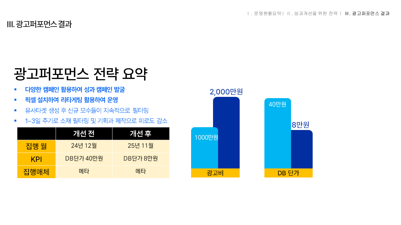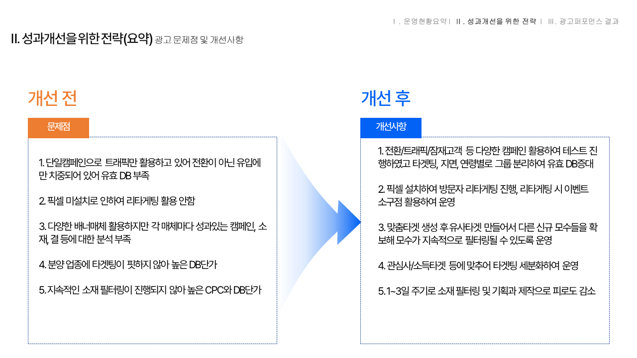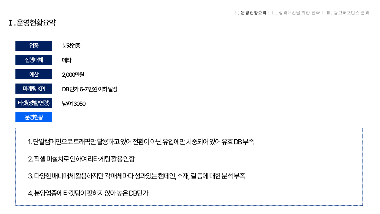 1. 단일캠페인으로 트래픽만 활용하고 있어 전환이 아닌 유입에만 치중되어 있어 유효 DB 부족