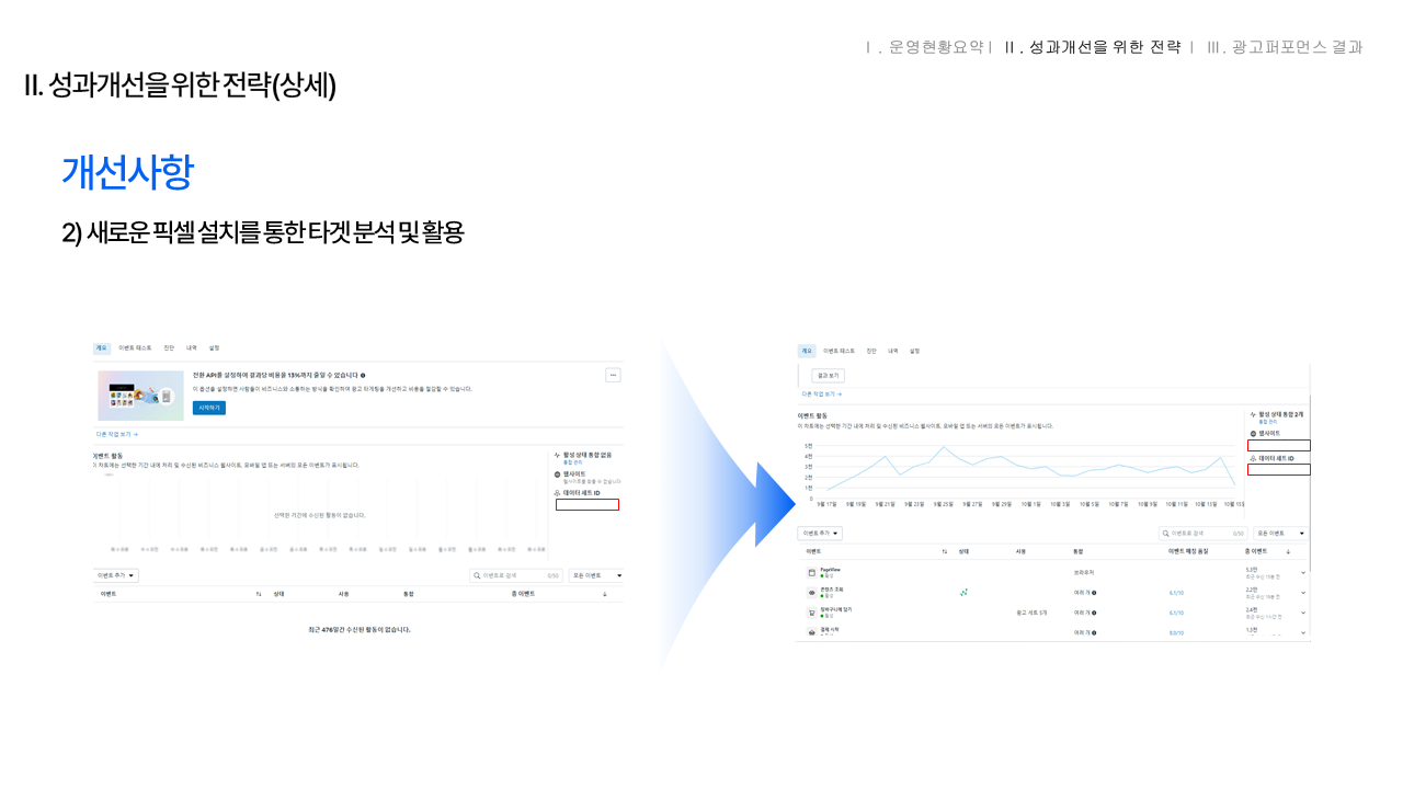 2. 픽셀 설치하여 방문자 리타게팅 진행, 리타게팅 시 이벤트 소구점 활용하여 운영