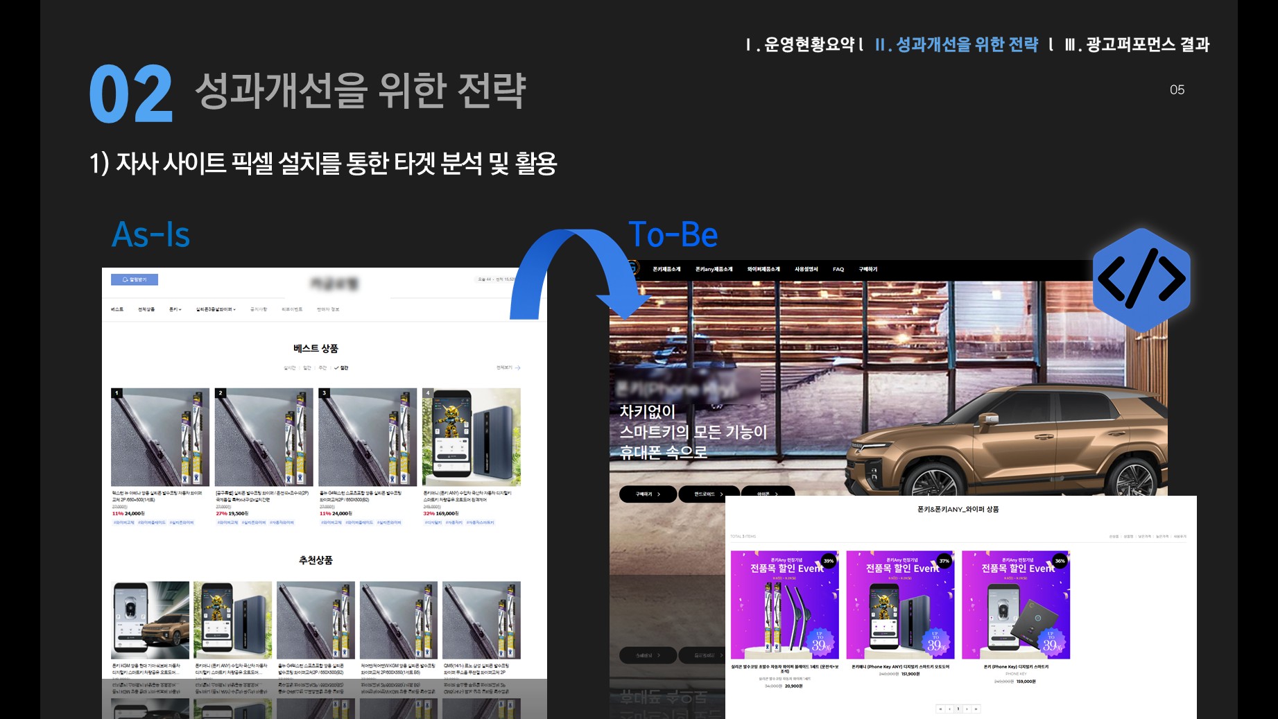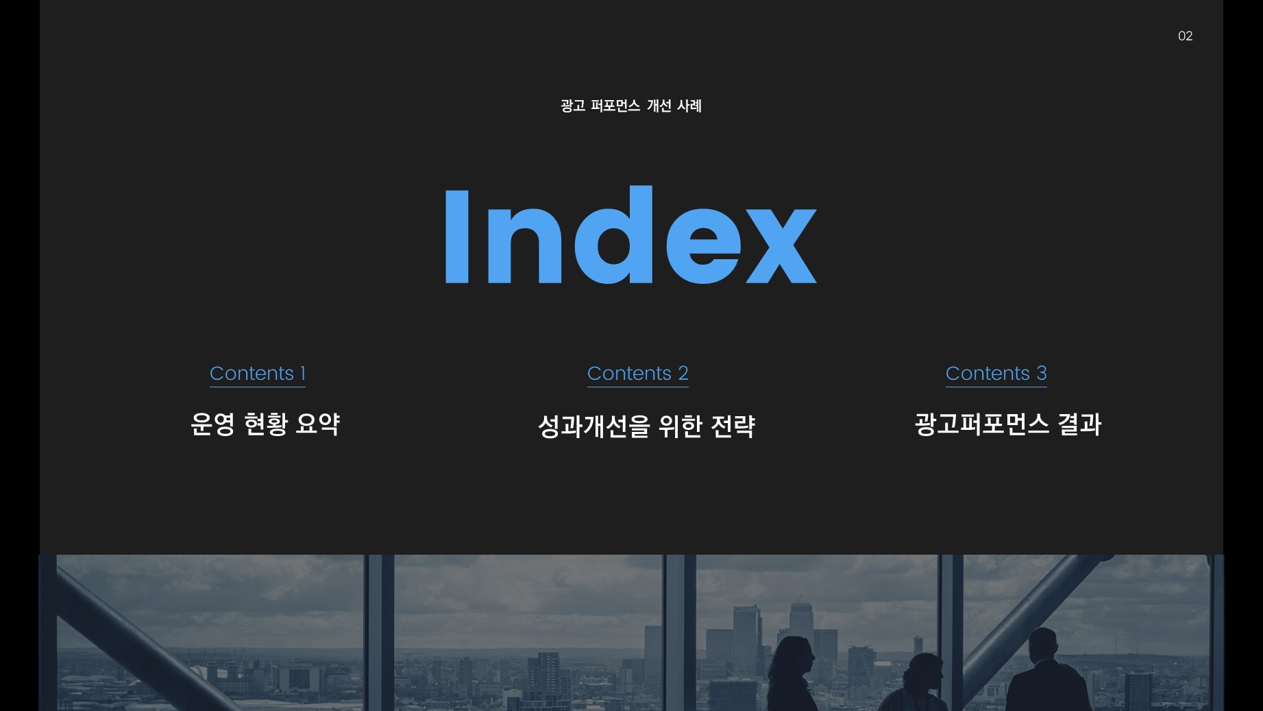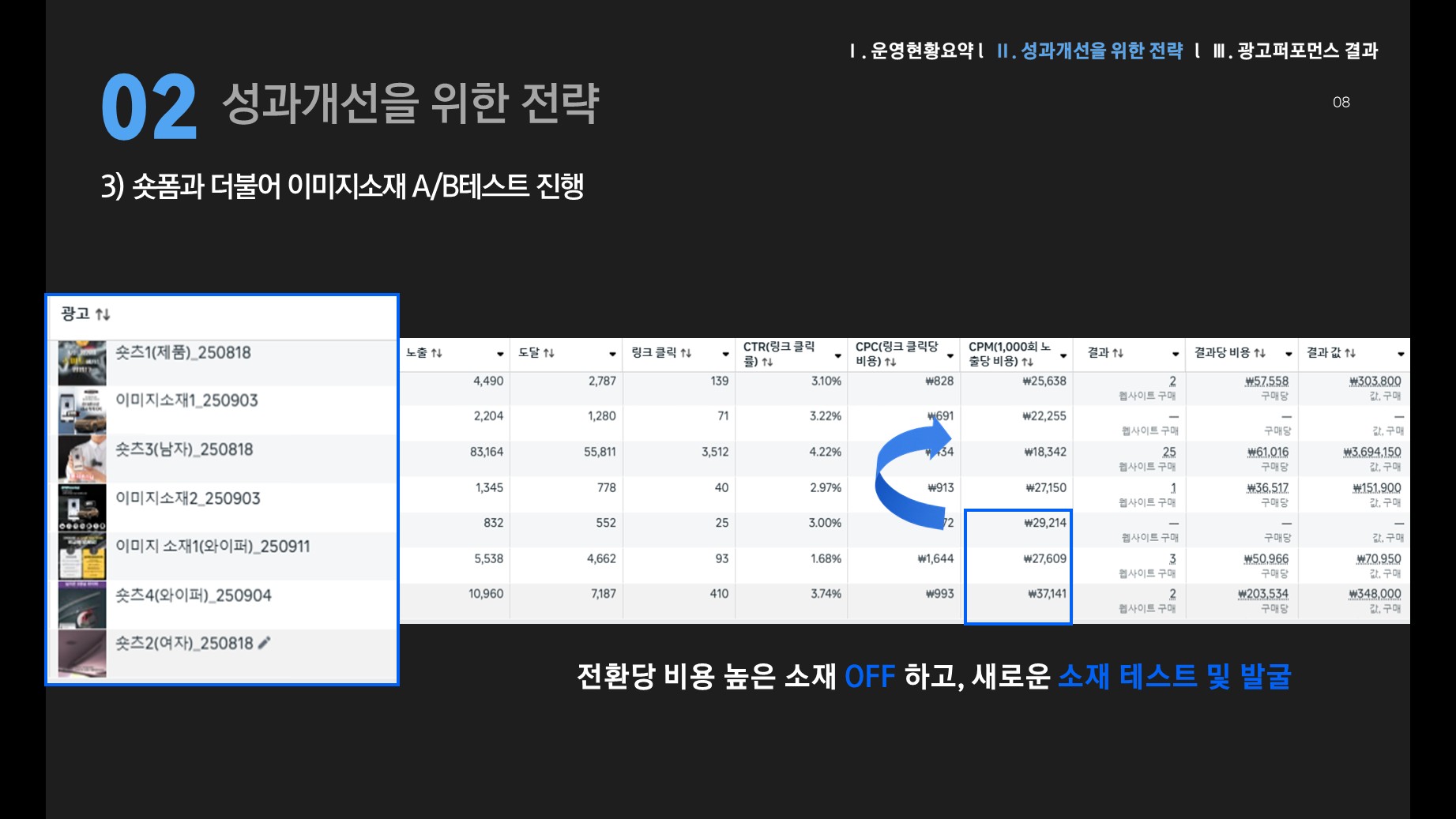 개요 네이버/메타/구글 중 메타 매체에서 전환율 증대 및 전환당 비용 감소, 브랜딩 및 전환 성과 증대