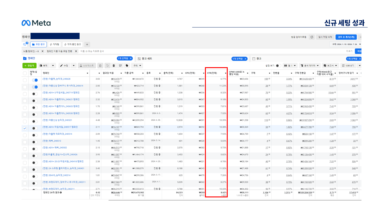 개요 META 광고 인지도 캠페인 도입, 목적에 따른 캠페인 분리, 광고 세트 당 소재 갯수 조절