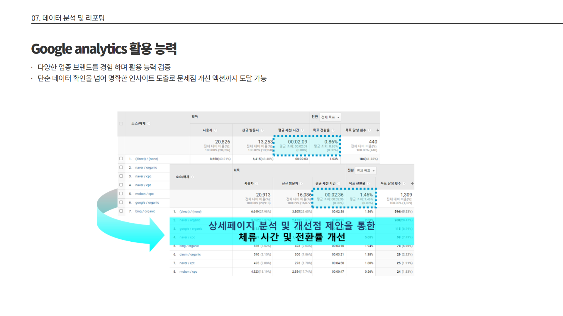 • 시간대·디바이스별 성과 편차 분석