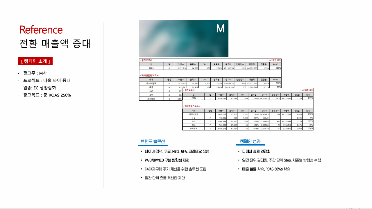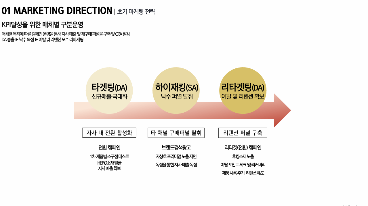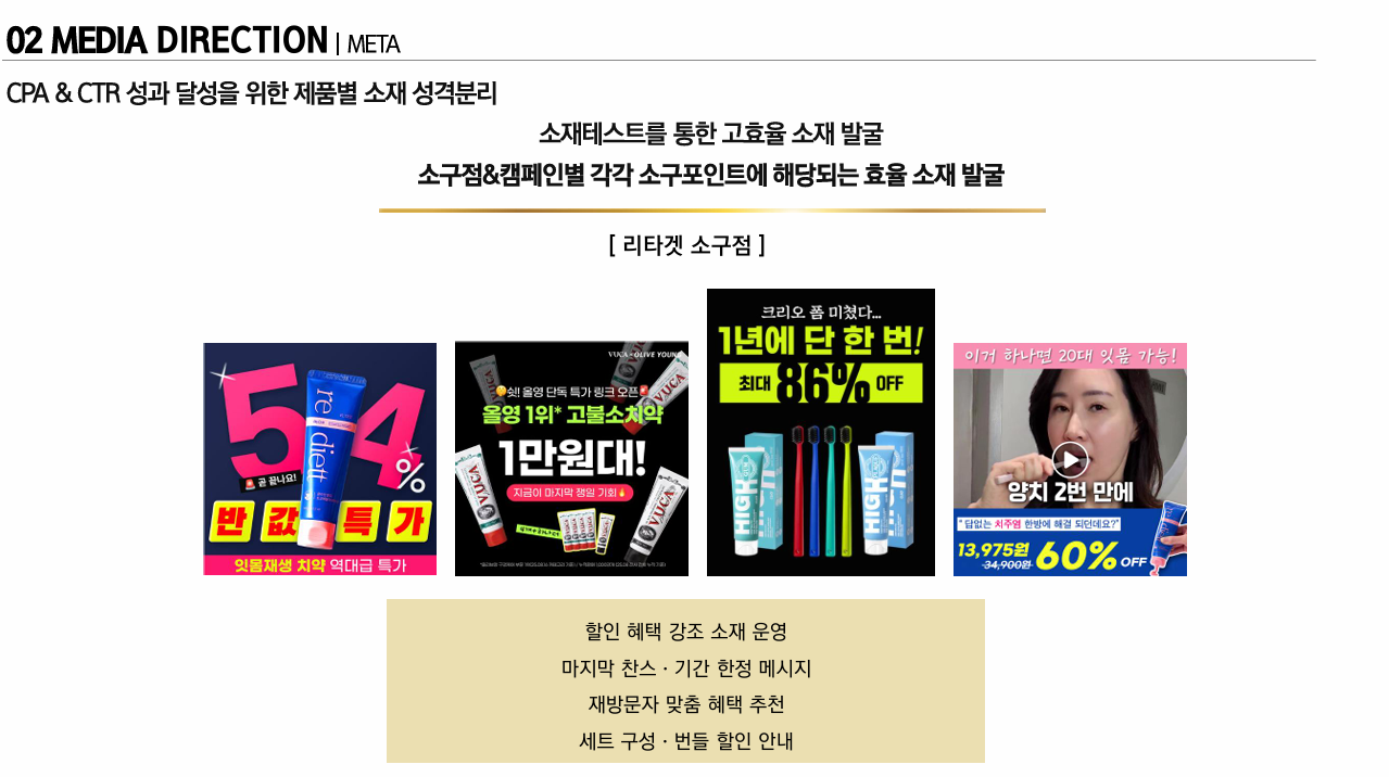 > 제품 USP를 중심으로 한 명확한 메시지 정립과 구매 장벽을 낮출 수 있는 스토리텔링형 소재 전략 제안