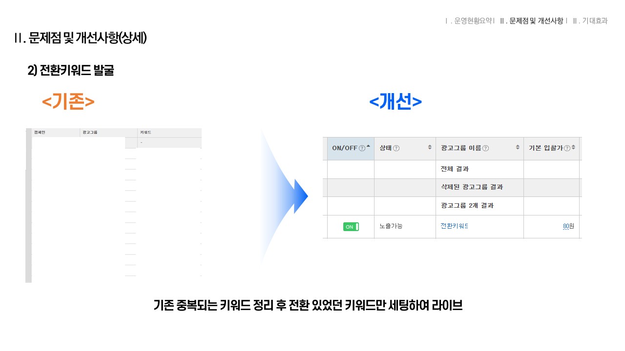 2. 전환 있던 키워드 발굴, 세팅하여 예산 절약
