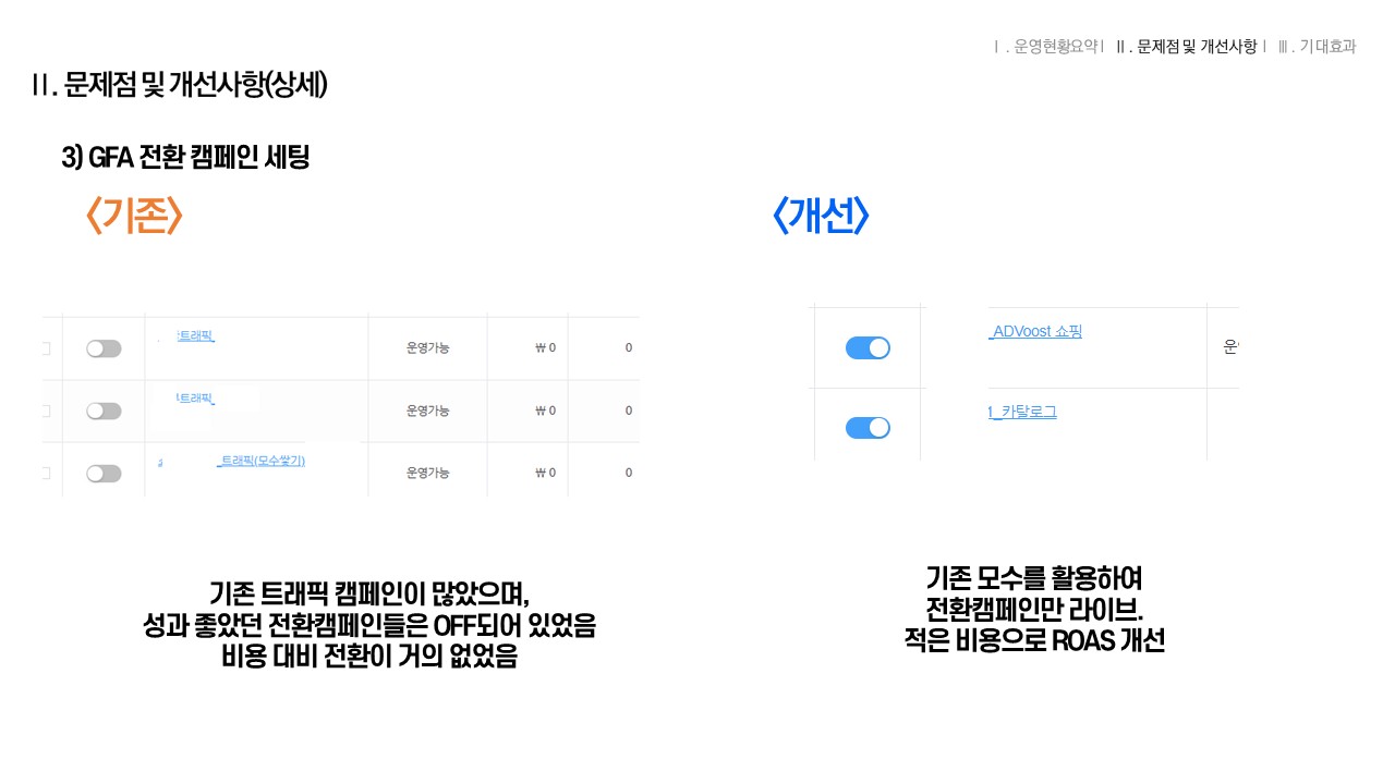 3. GFA 매체 : 모수 확보용인 트래픽만 운영하여 비용 대비 전환 적어 ROAS 하락