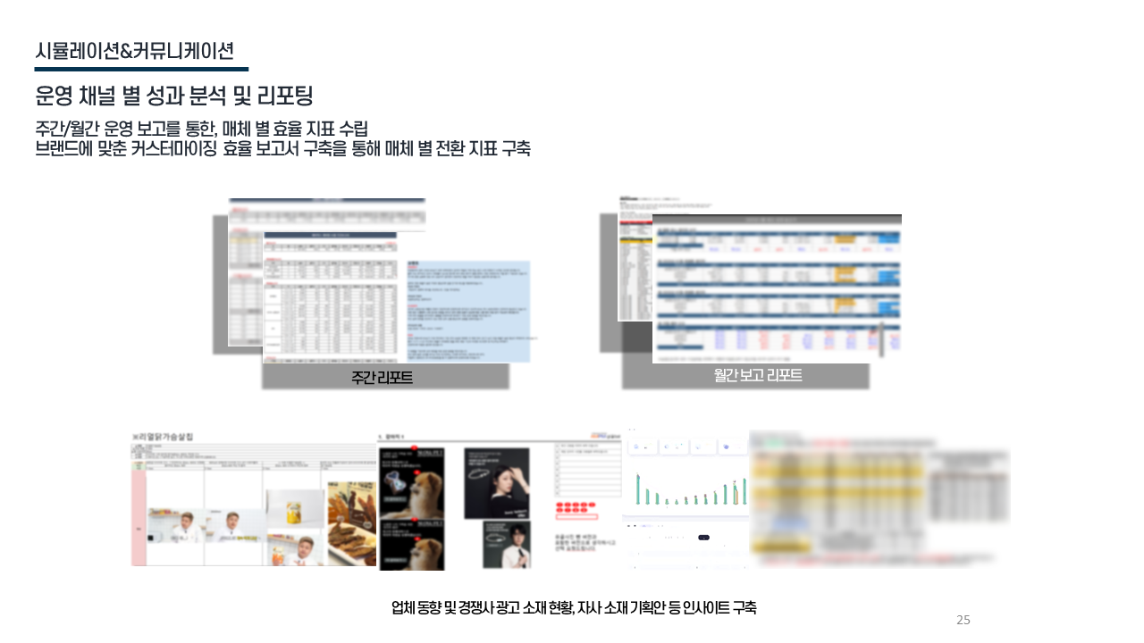 리포팅 전략 주간·월간 보고 / 매체별 효율 지표 제공 / 브랜드 맞춤형 인사이트 제공