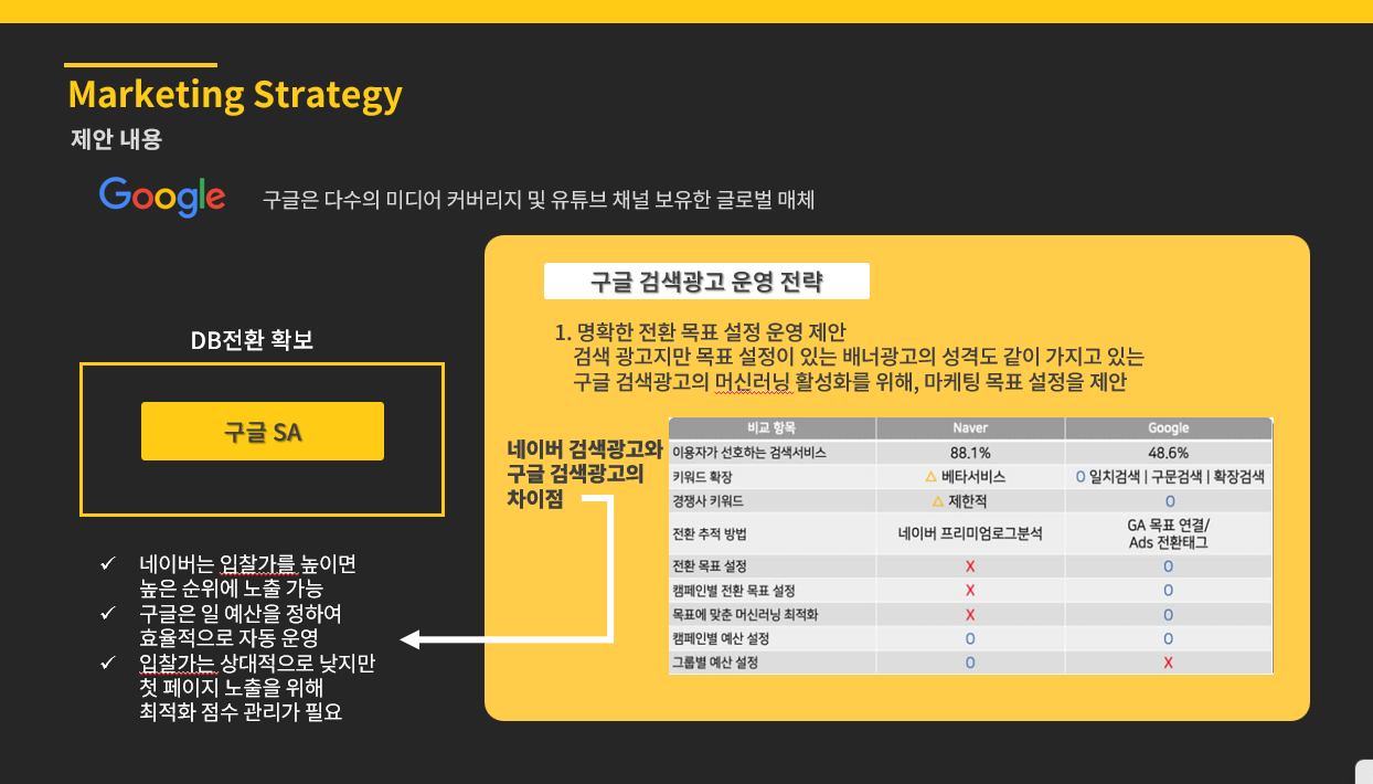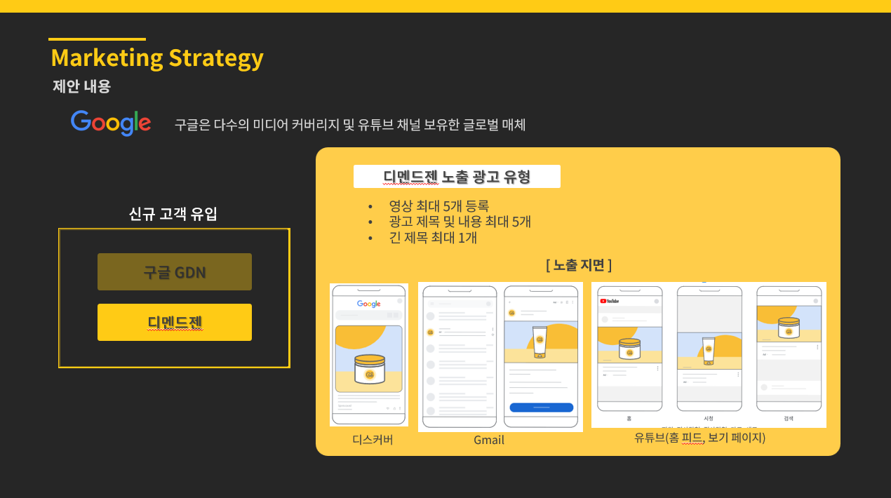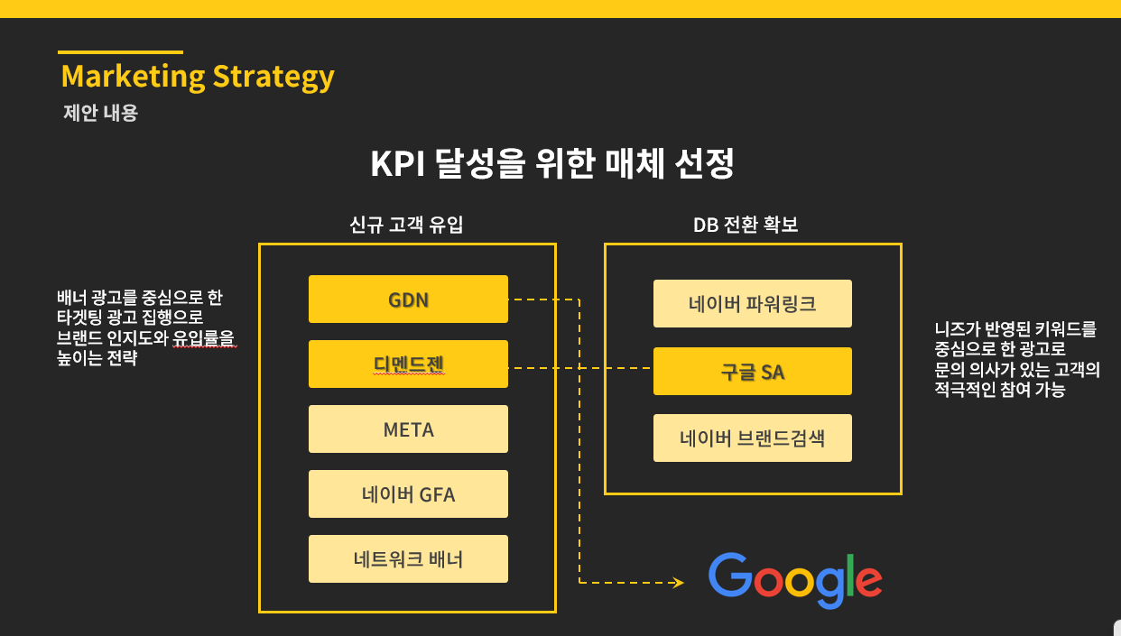 신규 브랜딩 시 초기에 구글 매체를 통해 활용해야 할 전략에 대해 제안