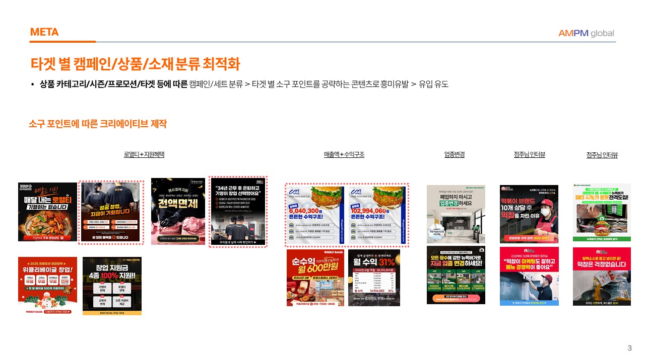 - 타겟별 캠페인/상품/소재 분류 최적화