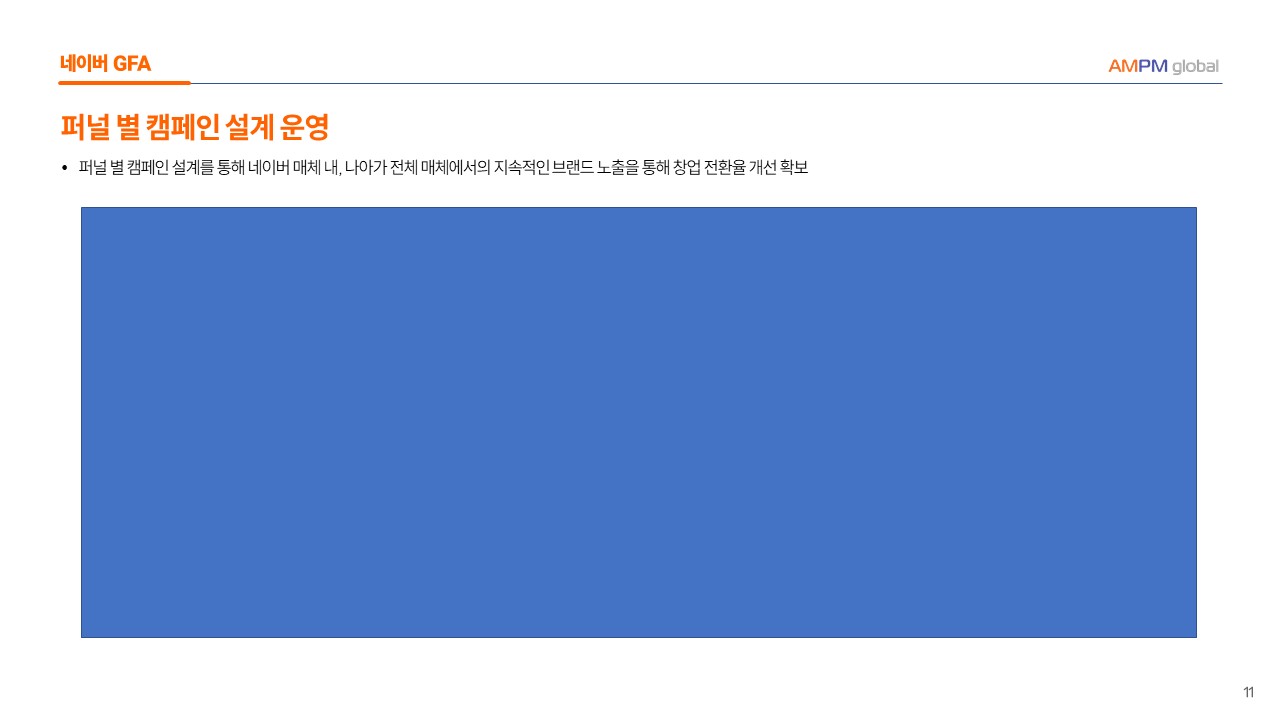 -->  퍼널 별 캠페인 설게를 통해 네이버 매체 내, 나아가 전체에서 지속적인 브랜드 노출을 통해 창업 전환을 개선 확보