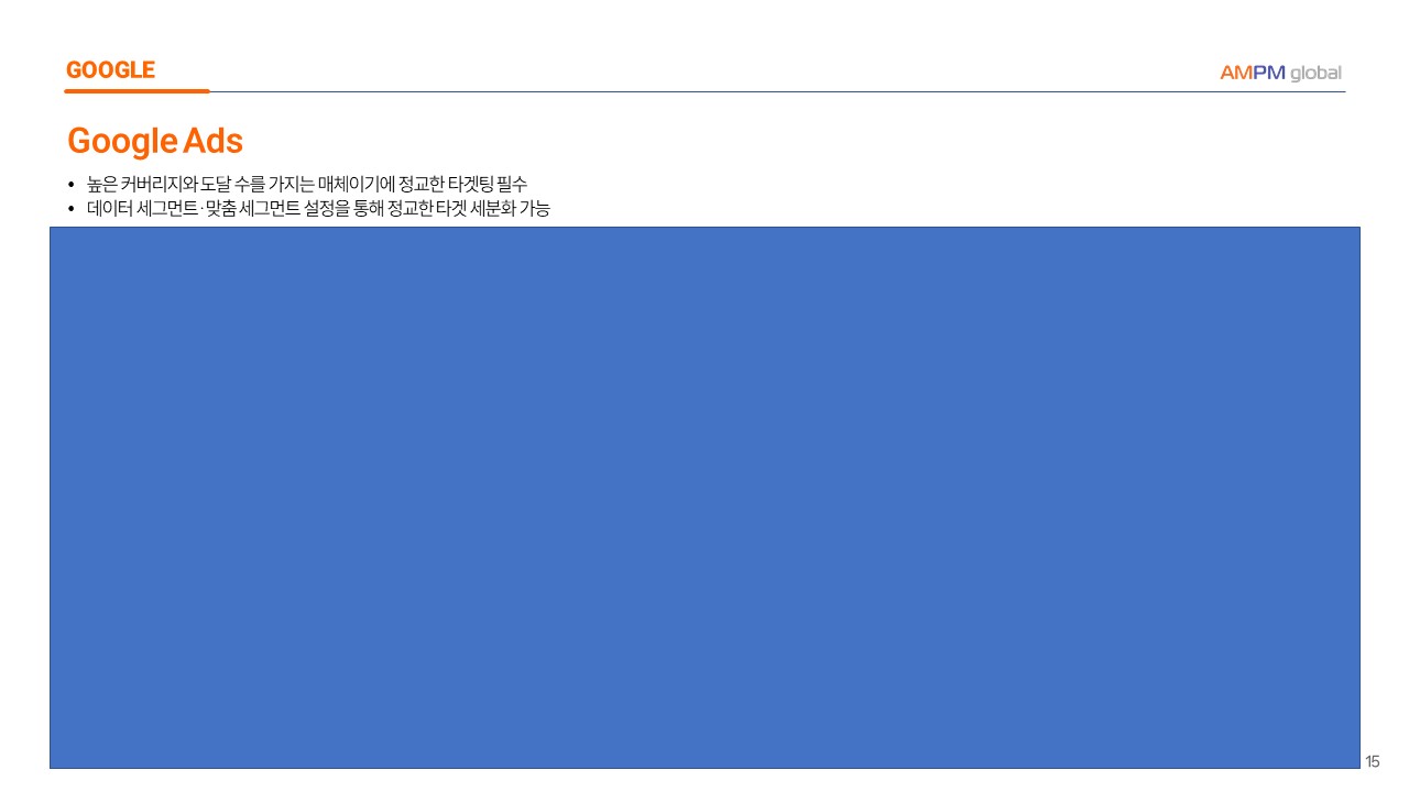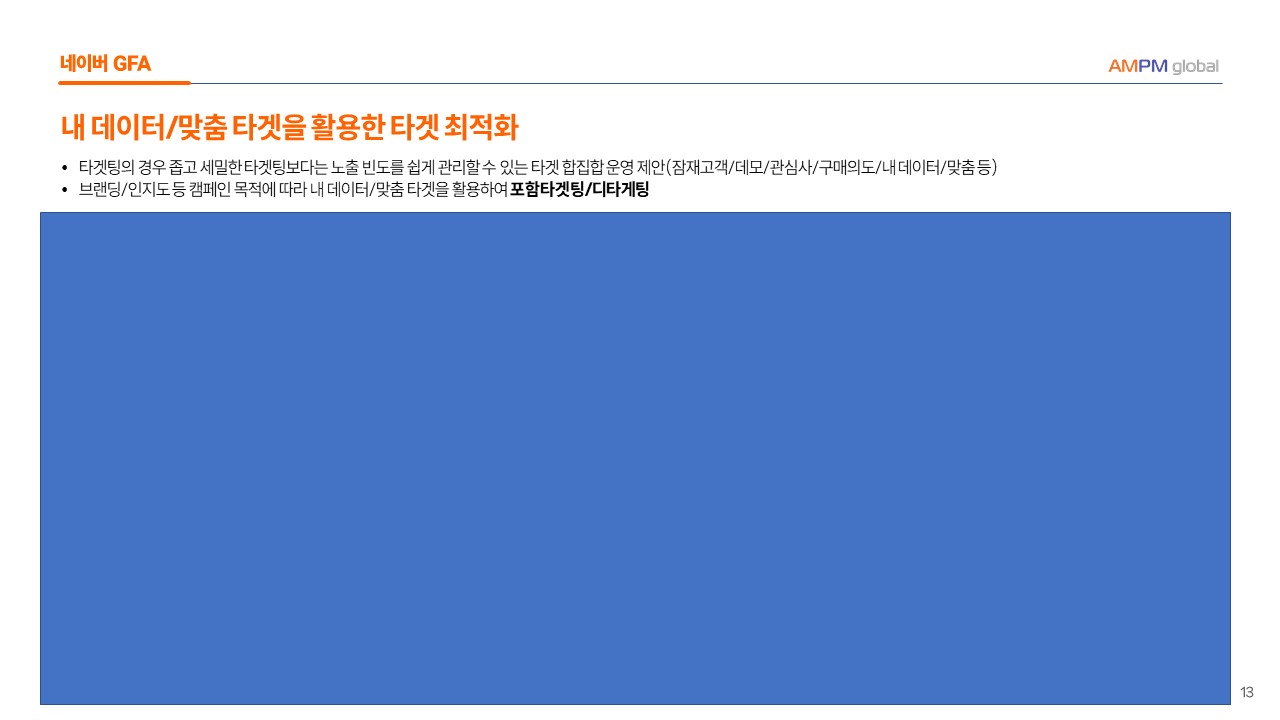 --> 브랜딩/인지도 등 캠페인 목적에 따라 내 데이터/맞춤 타겟을 활용하여 포함타겟팅/다타겟팅