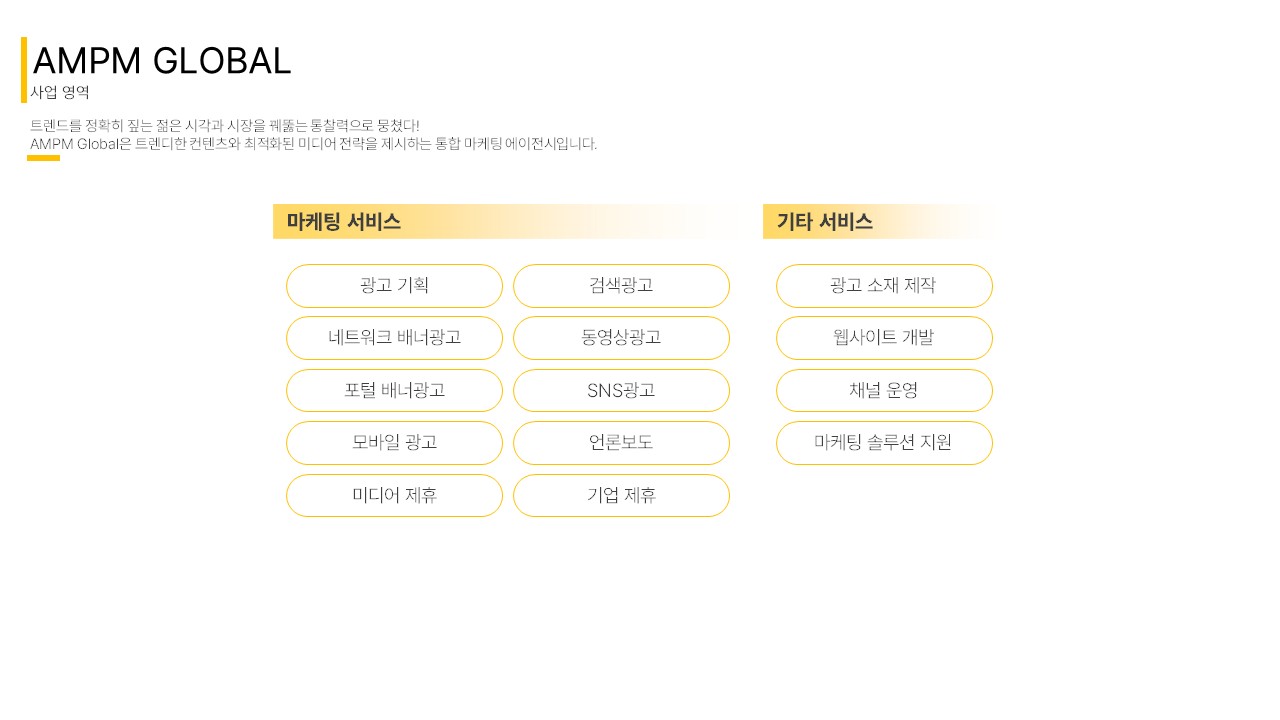 이용자가 광고상담, 영상출연/PPL, 교육 등과 같이 개인화 혹은 회원제 서비스를 이용할 경우, 에이엠피엠글로벌(AMPM global)은 아래와 같은 최소한의 개인정보를 수집합니다.