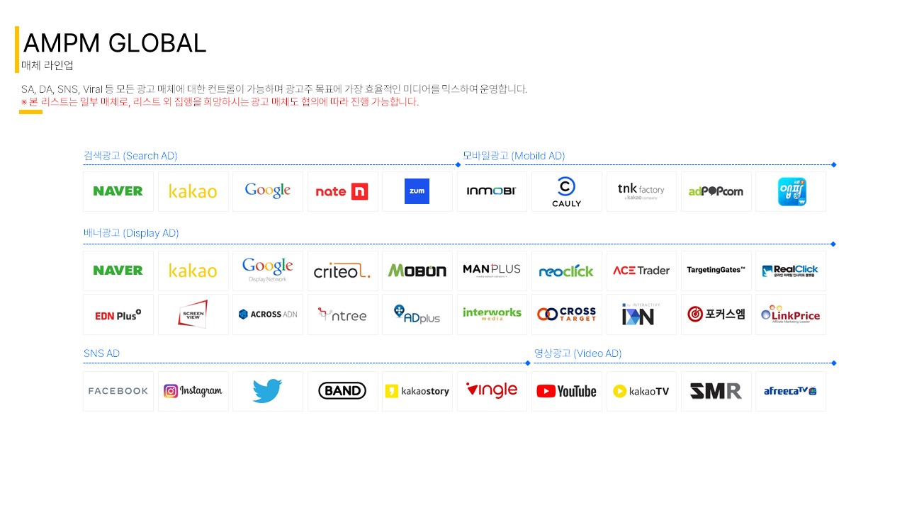 • 4. 에이엠피엠글로벌(AMPM global)은 매체사의 시스템 및 서비스장애로 인해 발생된 모든 장애에 대해 책임을 지지 않습니다.