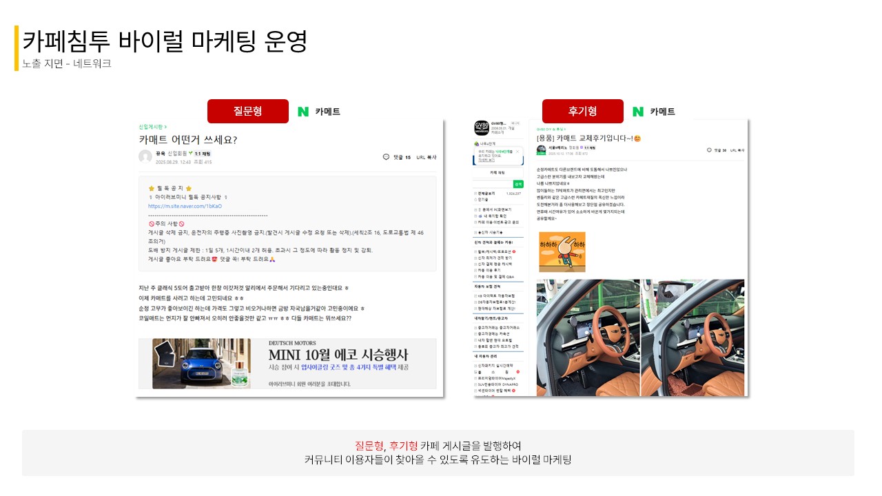 • 2. 고지사항 전달, 의사소통 경로 확보, 영업 수주 상담 및 광고 대행 서비스 제공을 위한 연락을 취할 수 있습니다.