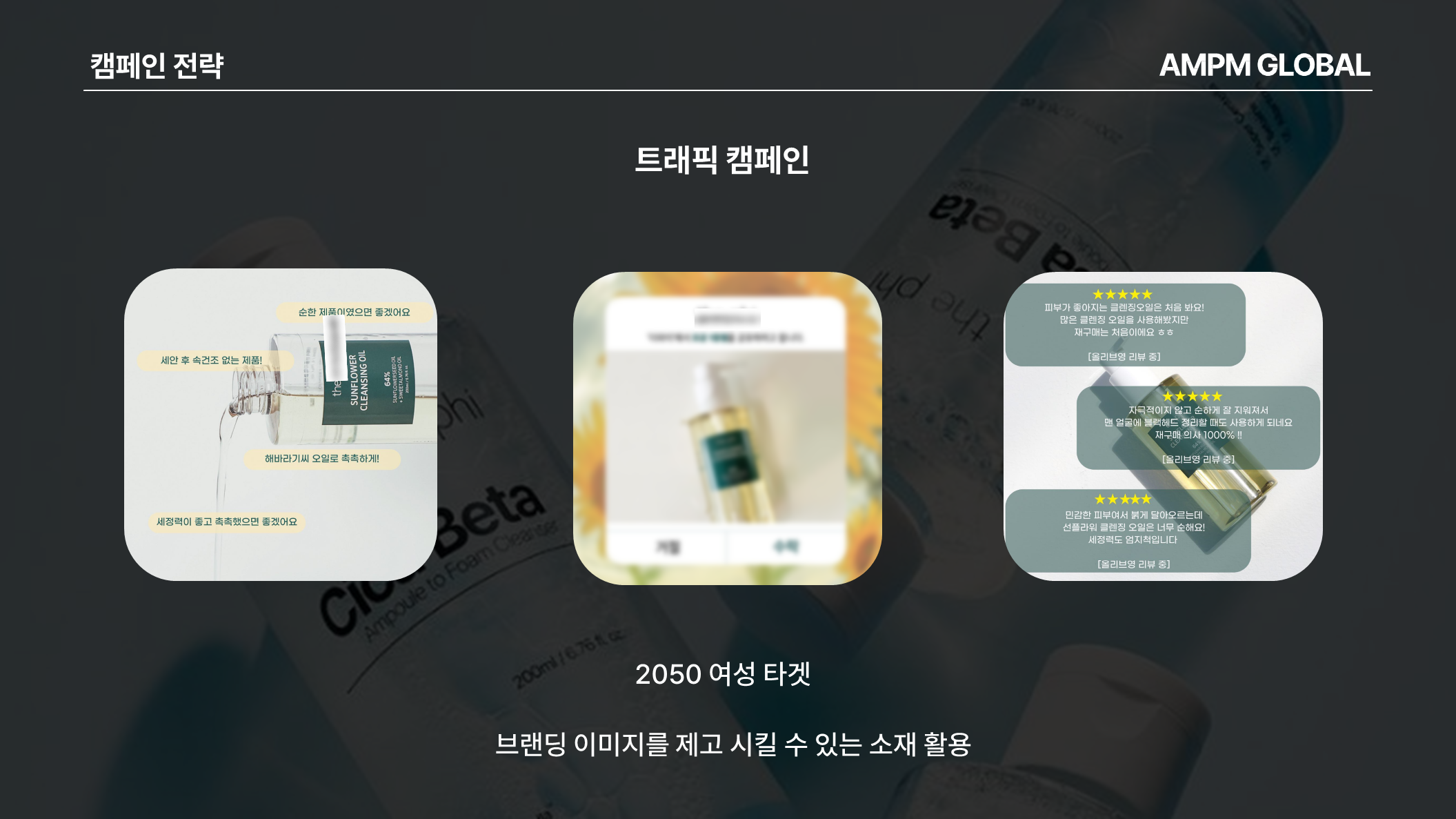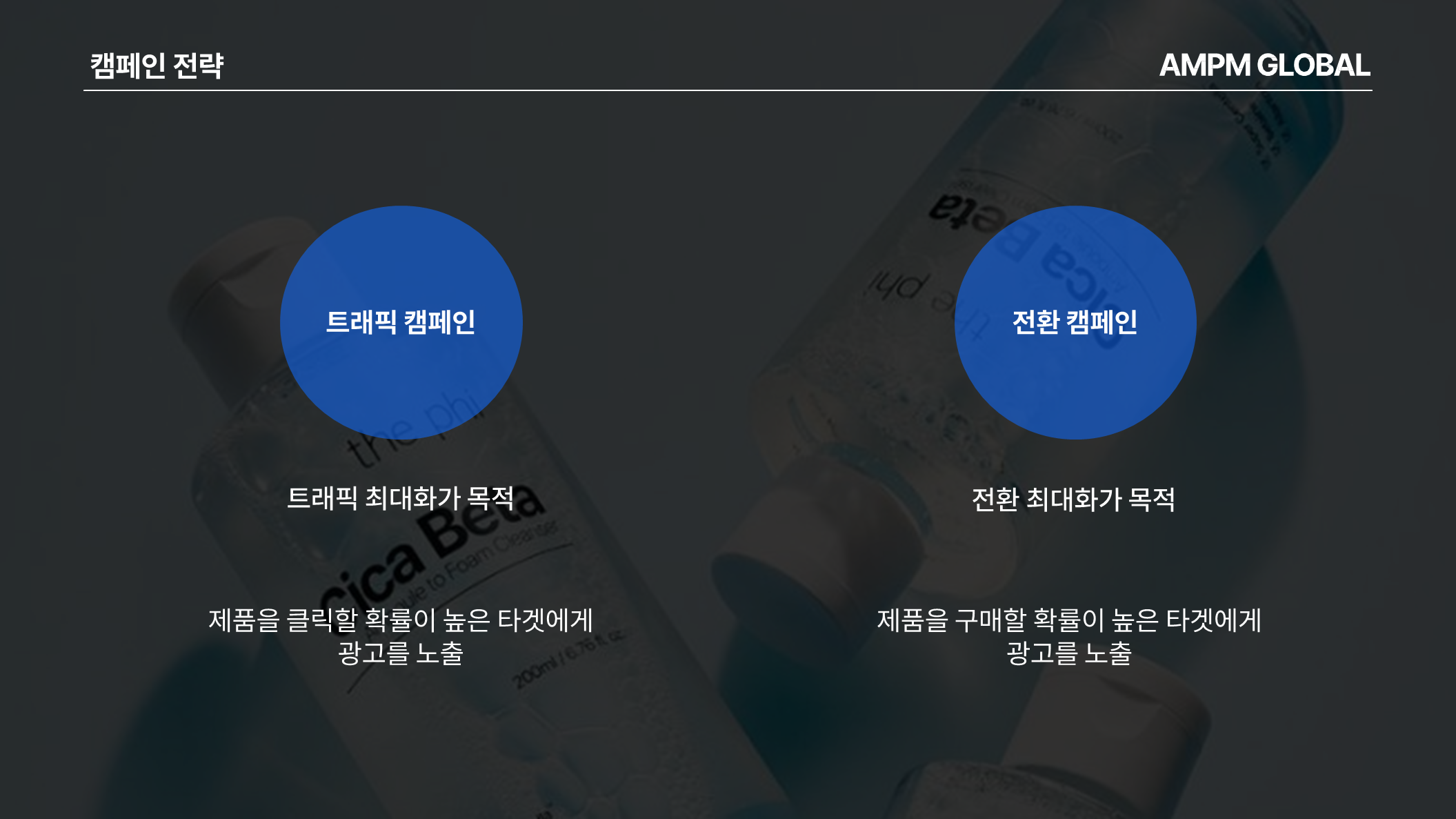 트래픽과 전환 캠페인을 분리 운영하며 전환용 소재와 브랜딩용 소재 별도 운영 제안