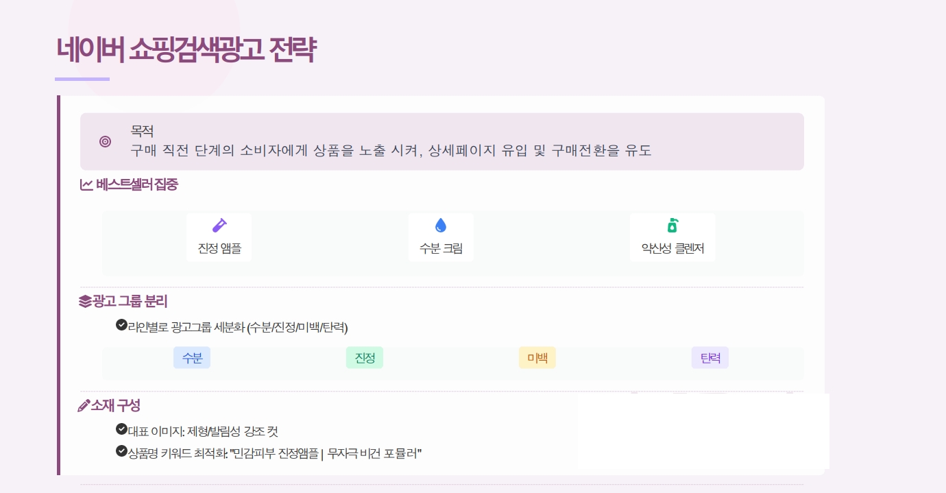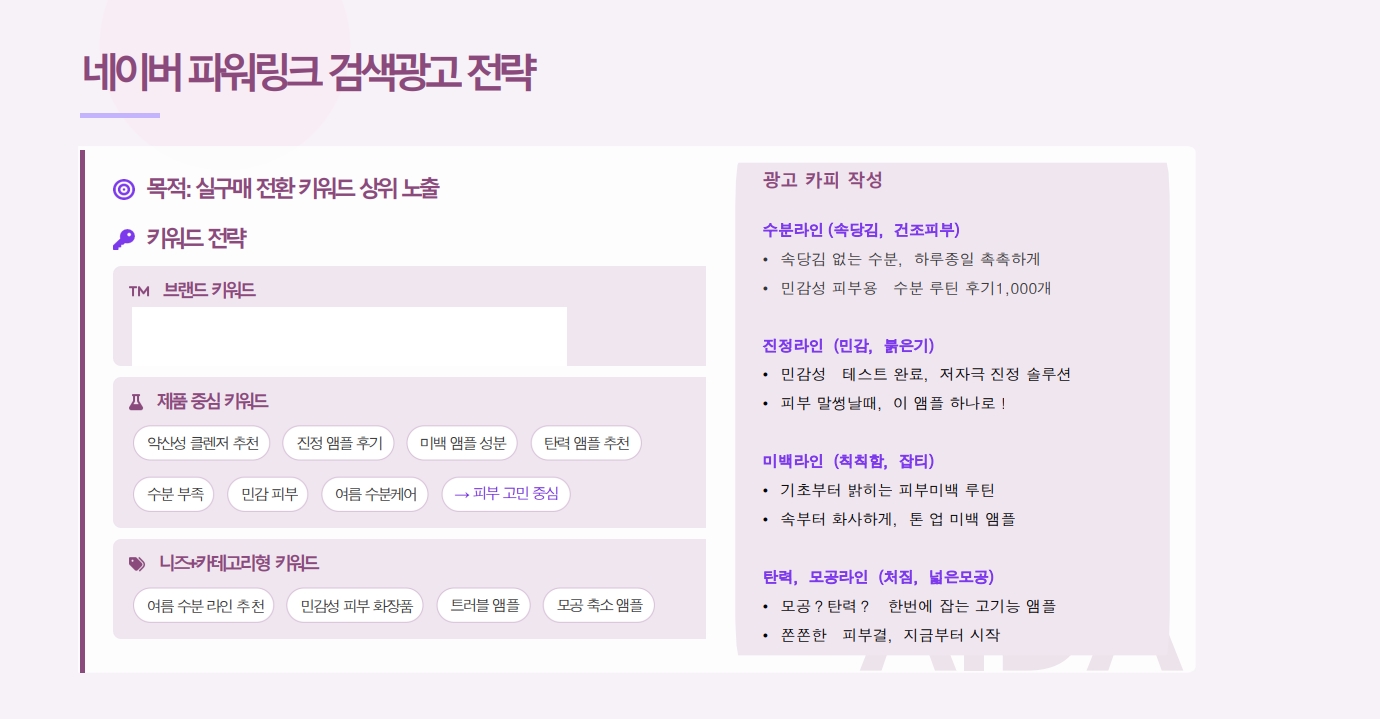 집행내용 네이버 SA와 DA 현상황 문제점 파악과 그에 맞는 캠페인/그룹/소재 재그룹핑 및 타겟별 맞춤 전략으로 매출 파이 확대 요청
