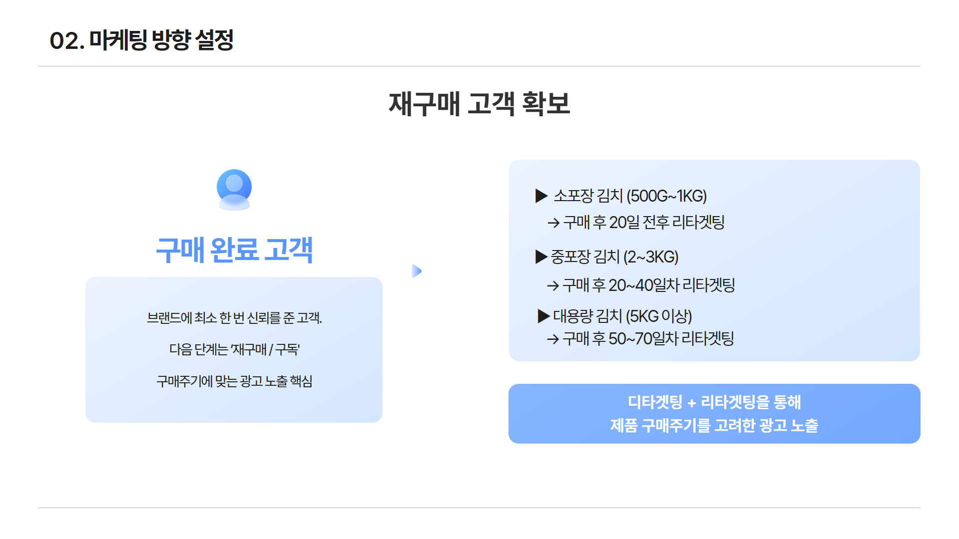 그 후, 한번 제품을 경험했던 고객에게 다시 재구매를 유발하기 위해 리타겟팅 및 CRM 마케팅을 활용해 브랜드 충성 고객을 전환