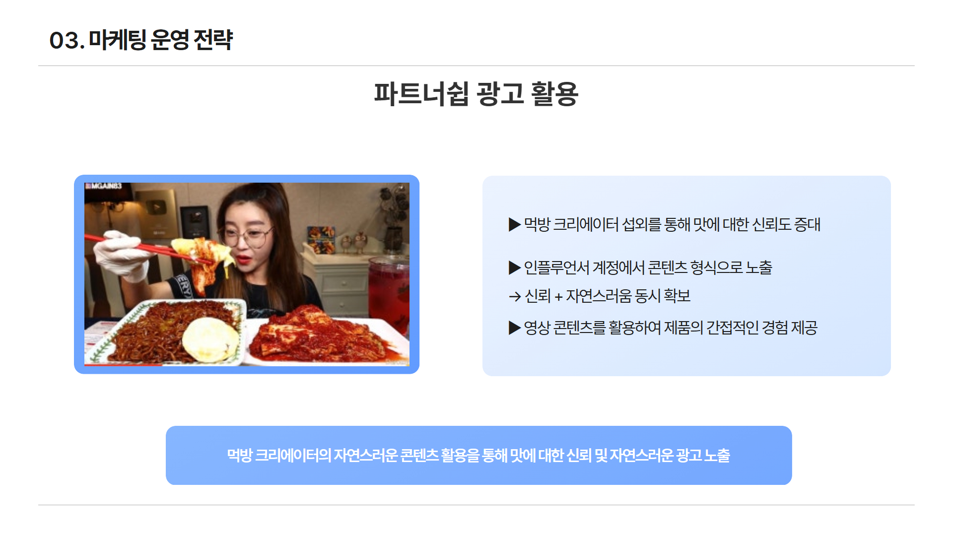집행내용 소비자들로 하여금 제품의 간접적인 경험이 중요한 식품 업종인 만큼