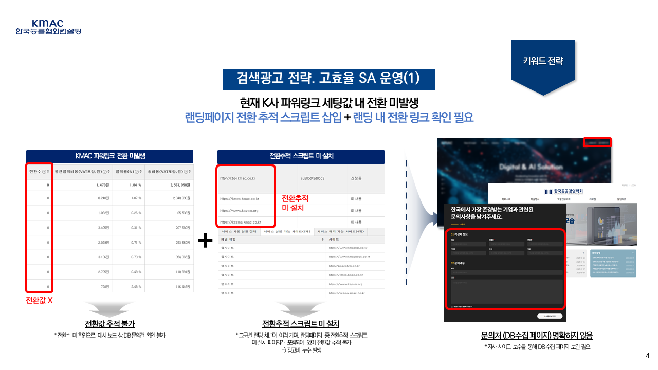 3. DB당 단가를 고려하기 보단 먼저 DB값이 잡혀야 하다 보니 전환 추적 스크립트 설치에 중점을 둠 -> 독립몰이라 전환 추적 스크립트를 내부에서 설치해줘야 하는 상황