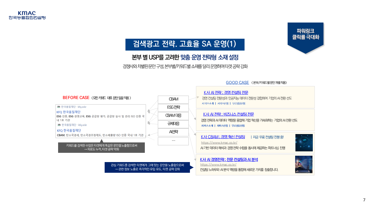집행내용 본부별 키워드 분리 및 전환 키워드 측정, 주기적인 필터링 진행