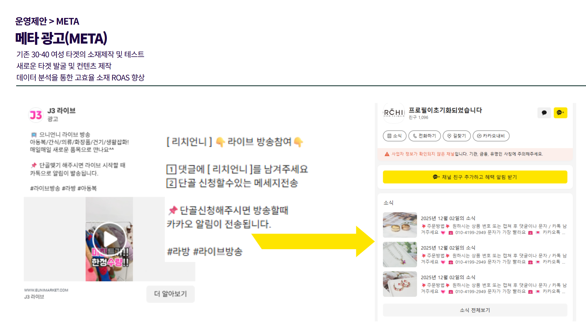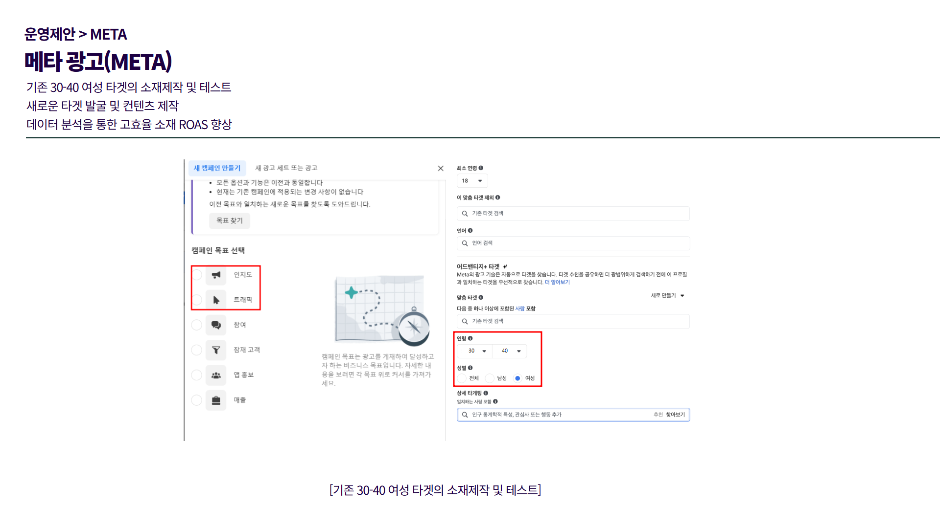 보조로 메타 트래픽 캠페인을 운영해 젊은 층 유입을 도모하고,