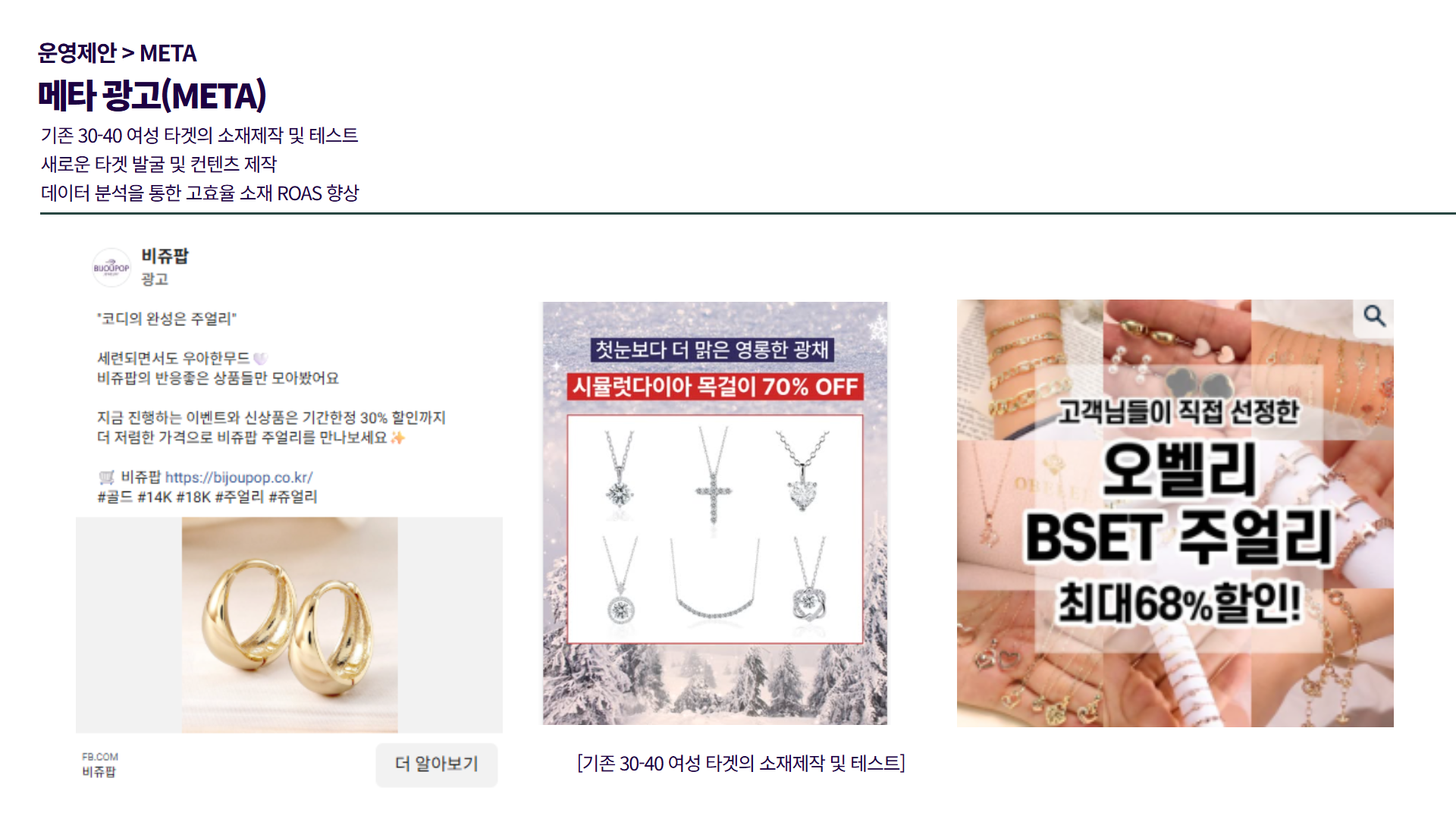 쥬얼리 , 패션잡화 업종으로 타깃은 30~50대 여성으로 잡고, 배너 광고는 후킹성과 핵심 소구 메시지에 집중해 소재를 기획