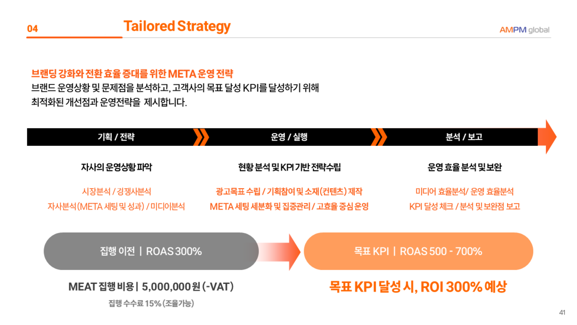 목표 ROAS 500~700% 설정, 성과 개선 통한 ROI 극대화 지향
