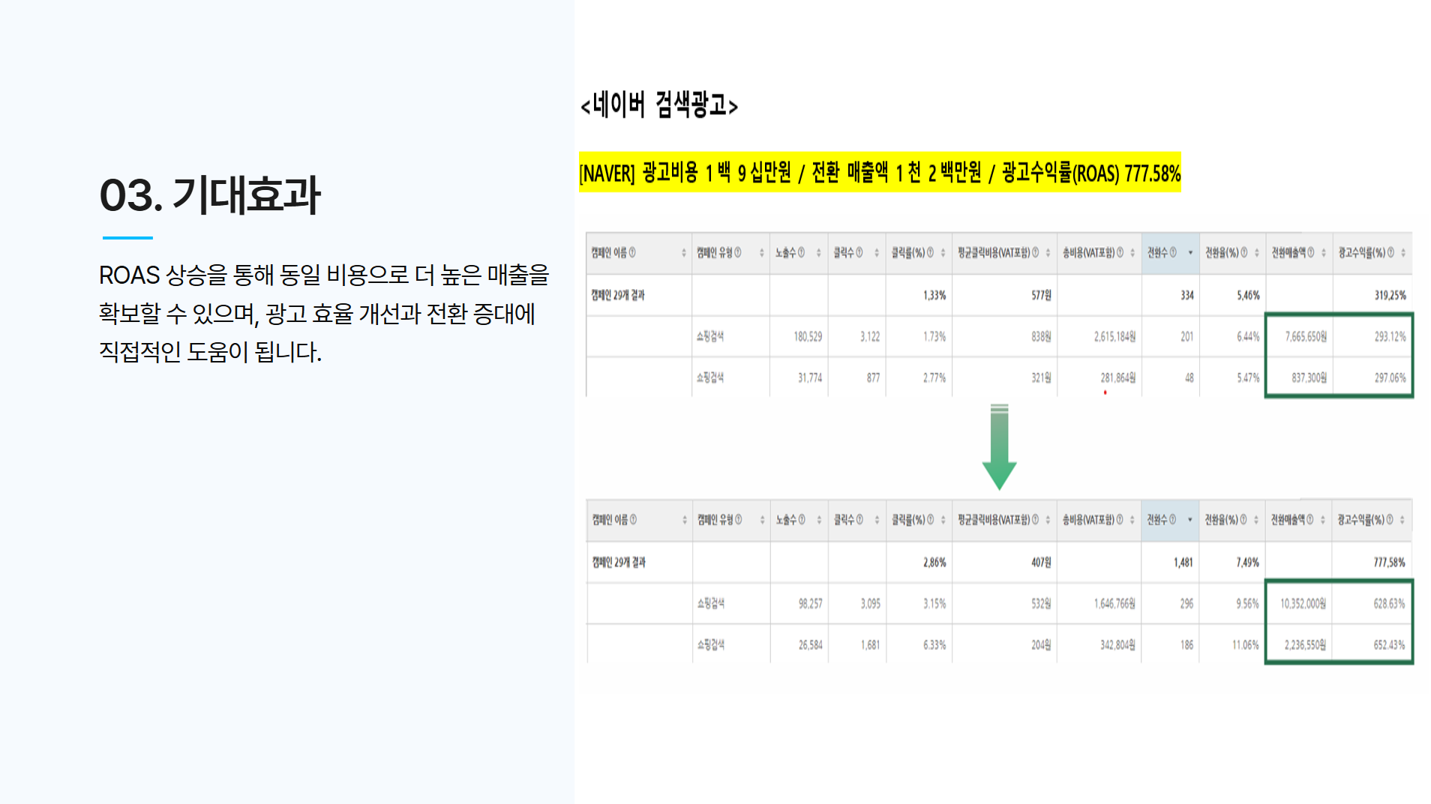 집행내용 네이버 SA와 블로그 리뷰로인한 ROAS상승