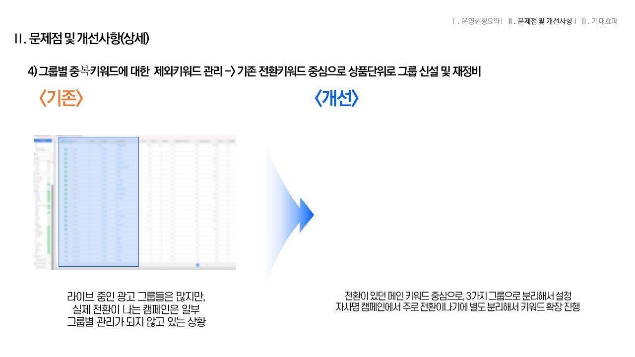 1) 기존 전환키워드 중심으로 상품단위로 그룹 신설 및 재정비