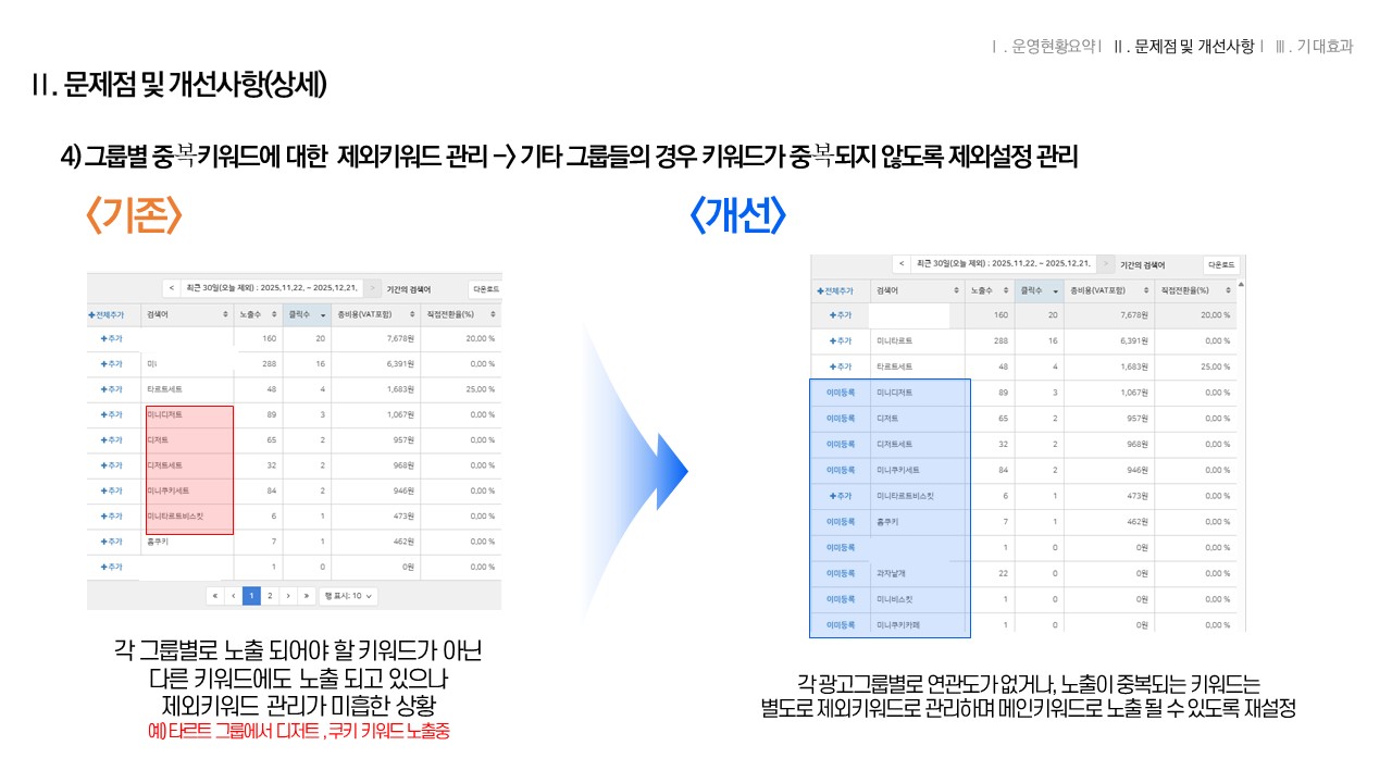 2) 기타 그룹들의 경우 키워드가 중복되지 않도록 제외설정 관리