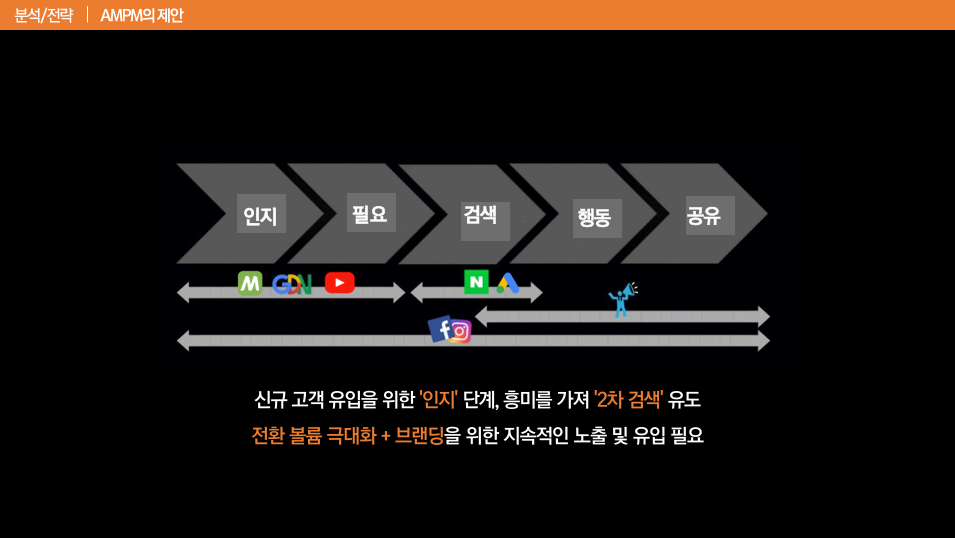 - 최근 식품 업종에서 효과가 좋은 성과 중심형 GFA를 신규 집행함으로써 전환 볼륨을 상승할 수 있는 전략 제안