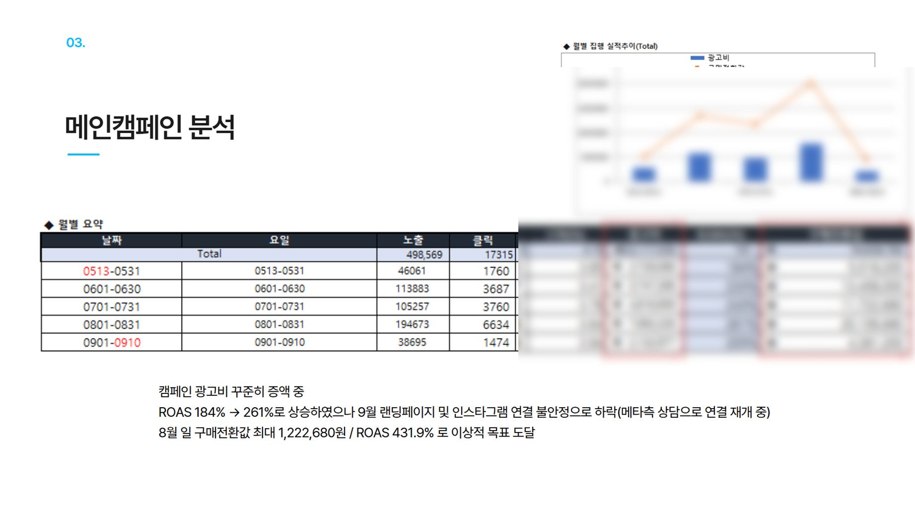 집행내용 트래픽+전환 캠페인+리타겟팅+타겟발굴 순서대로 퍼널 설계