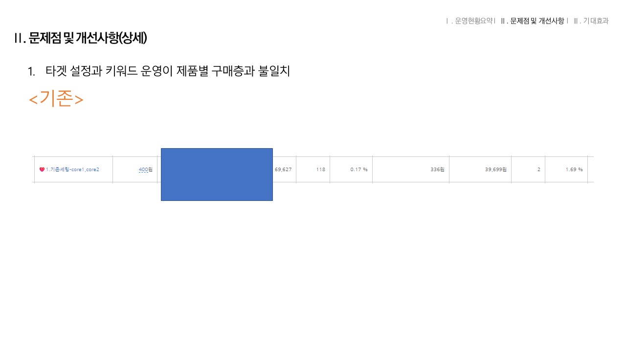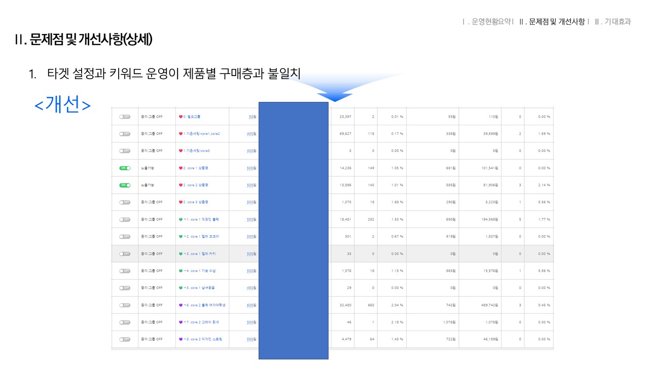 타겟 설정과 키워드 운영이 제품별 구매층과 불일치