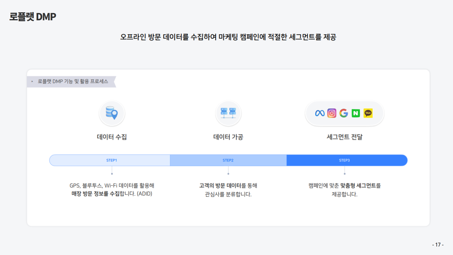• 각종 이벤트 참여 정도 및 방문 회수 파악 등을 통한 타겟 마케팅 및 개인 맞춤 서비스 제공
