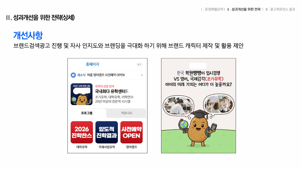 ⭐ 유학 업종 특성상 자사명 관련 전환이 가장 압도적인데 브랜드검색광고를 진행하고 있지 않은 상황으로 브랜드검색광고 진행 및 자사 인지도와 브랜딩을 극대화 하기 위해 브랜드 캐릭터 제작 및 활용 제안