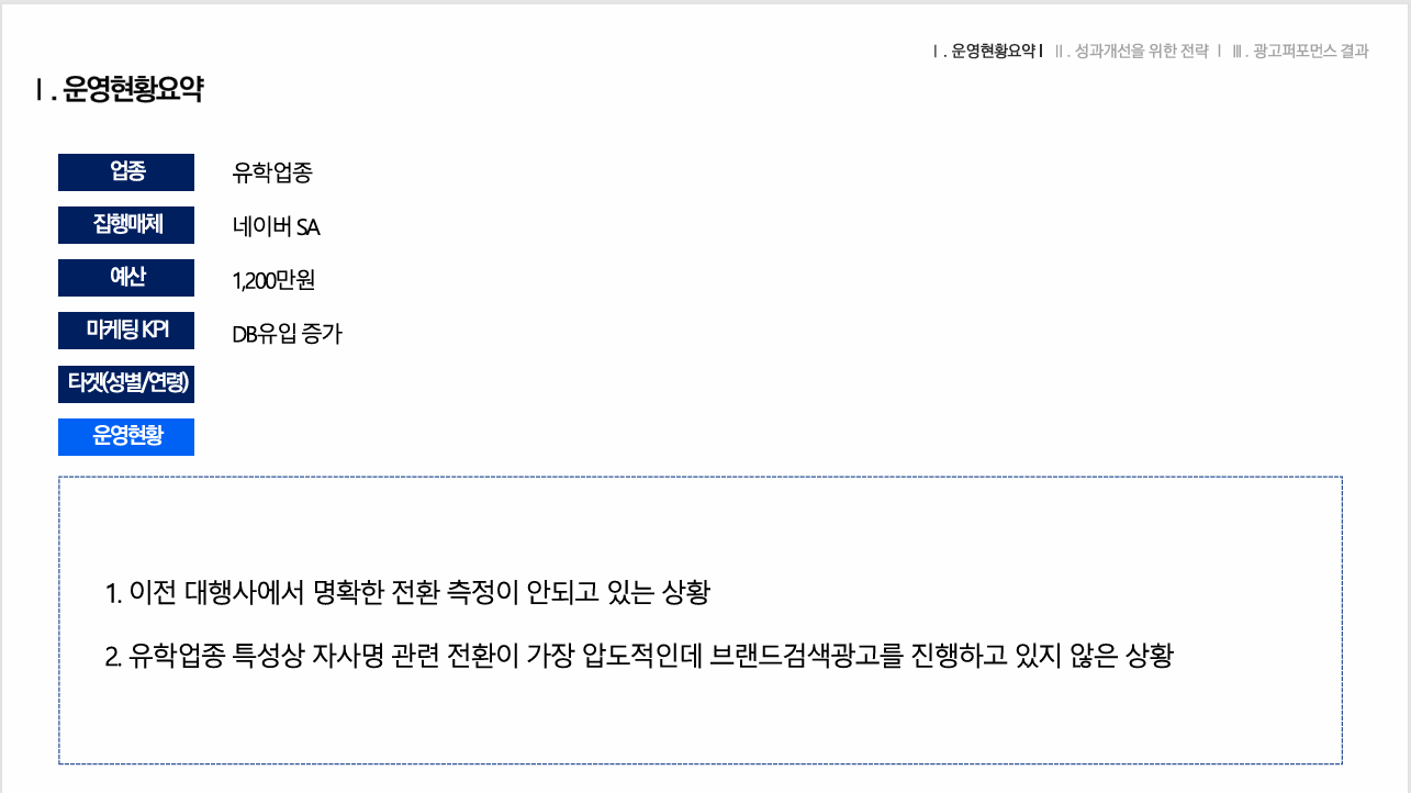 유학 업종 G사 광고퍼포먼스 개선사례