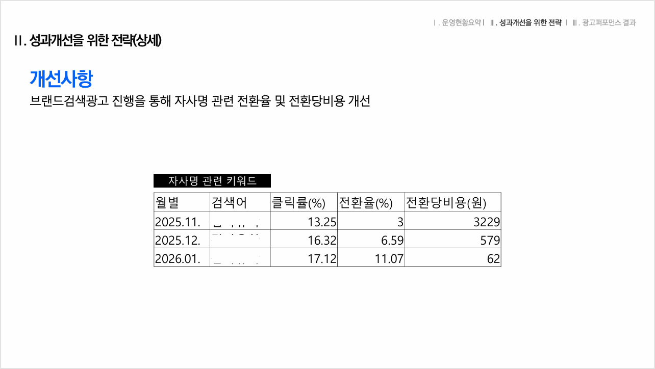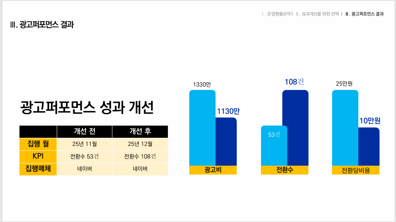 집행 후 광고비 1130만원, 전환수 108건, 전환당비용 10만원