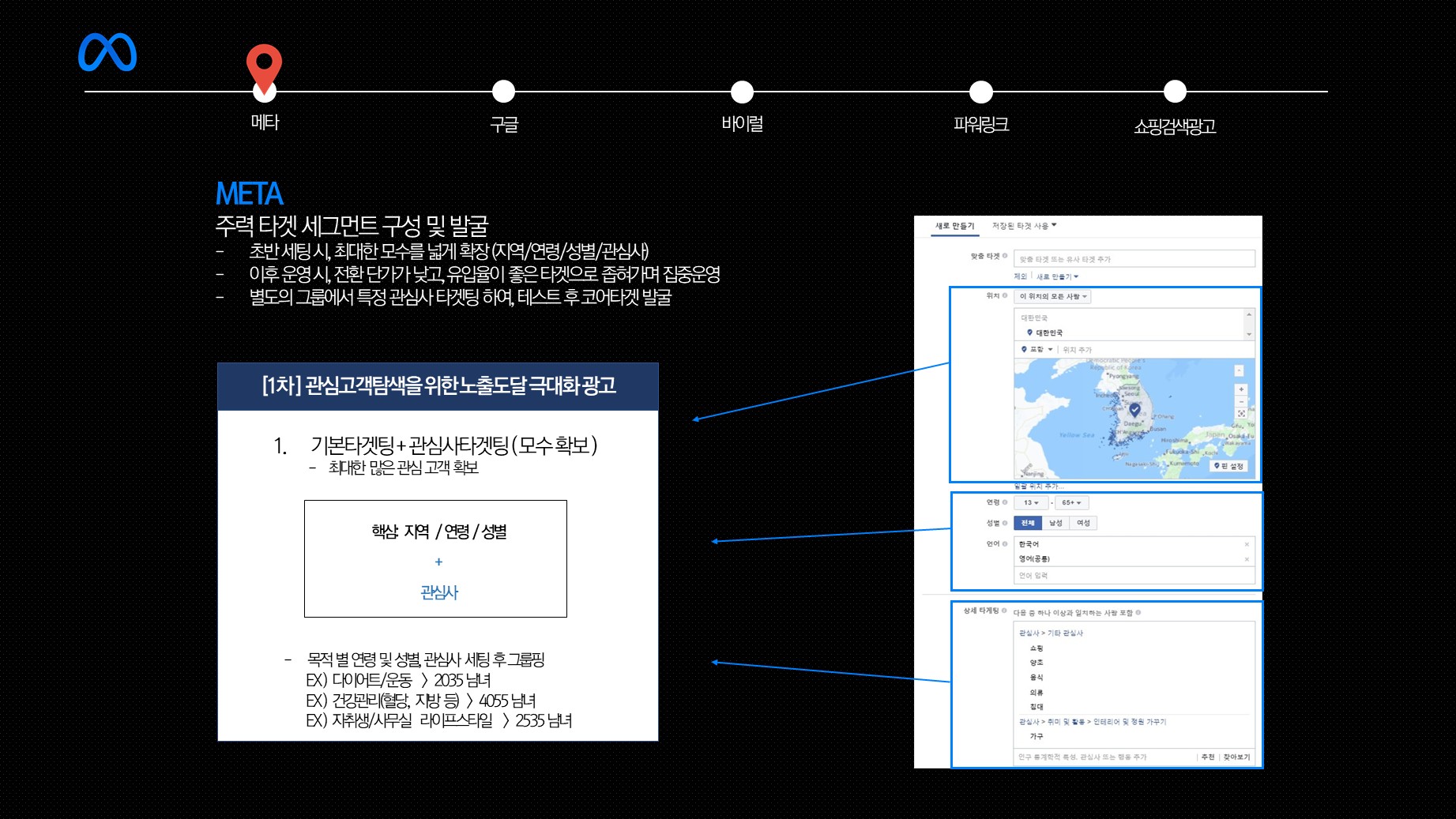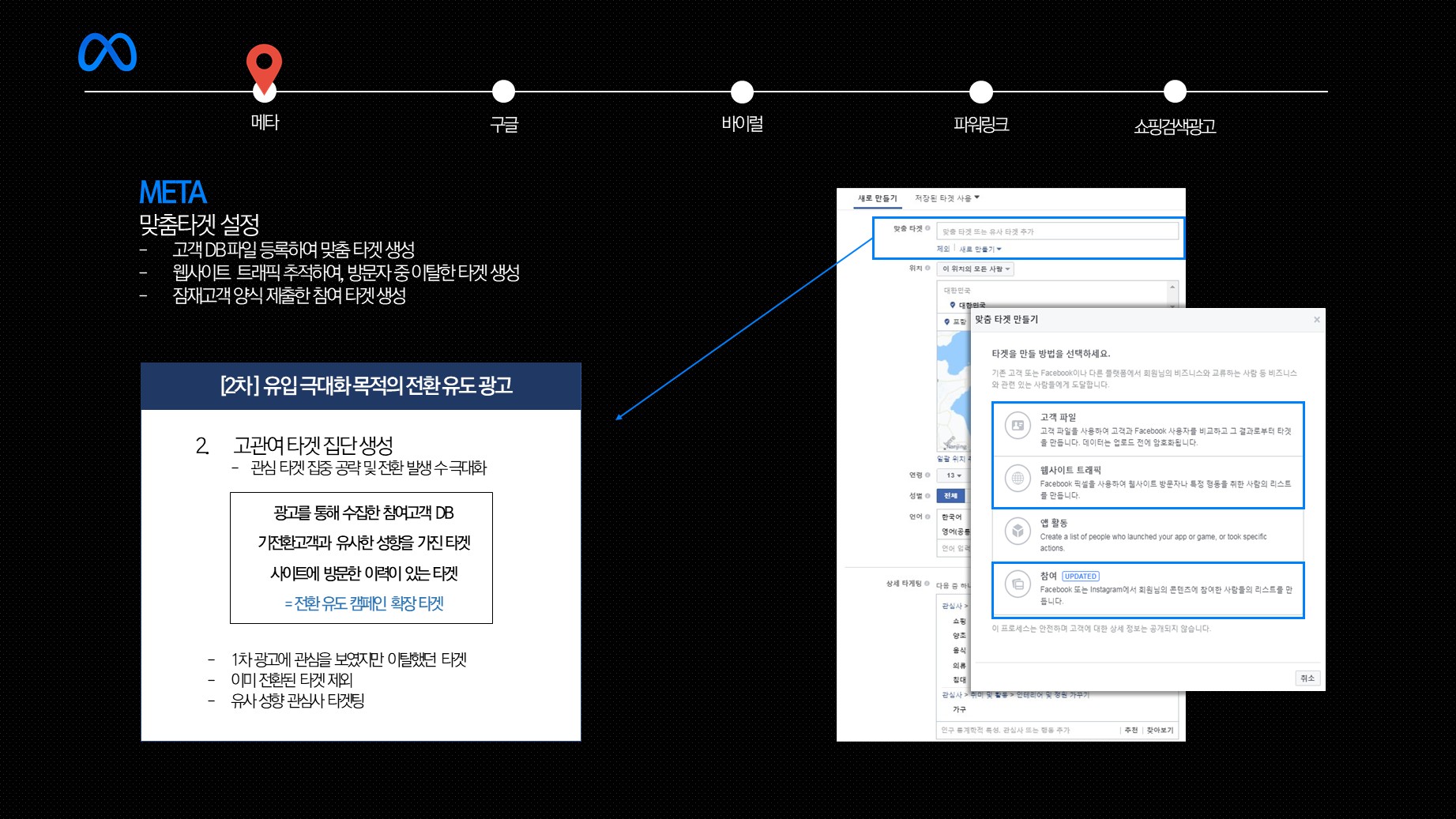 신규 고객 대량 도달 + 고관여 타겟 정밀 타겟팅 + 리타겟팅