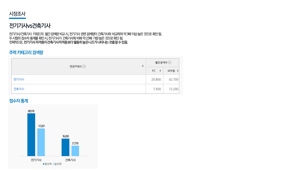 - 동일 카테고리 내 다양한 키워드를 리스트업한 후, 키워드 별 쿼리량/클릭량/전환율 파악 및 구조화