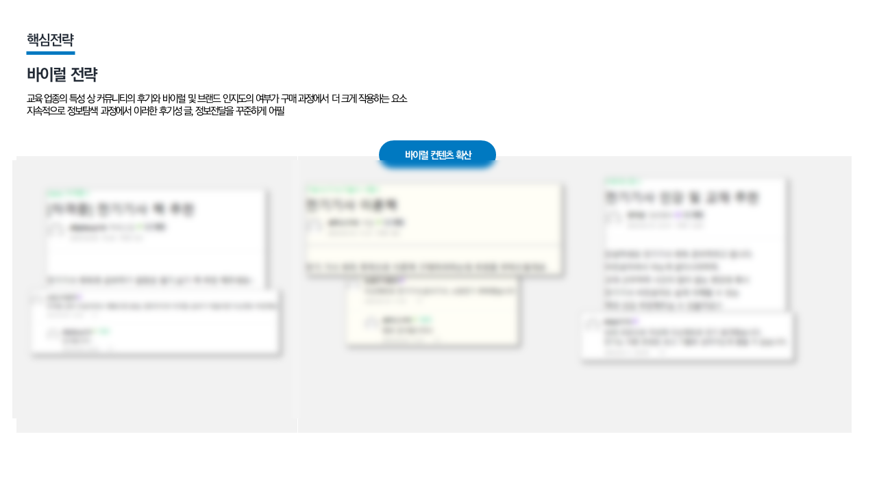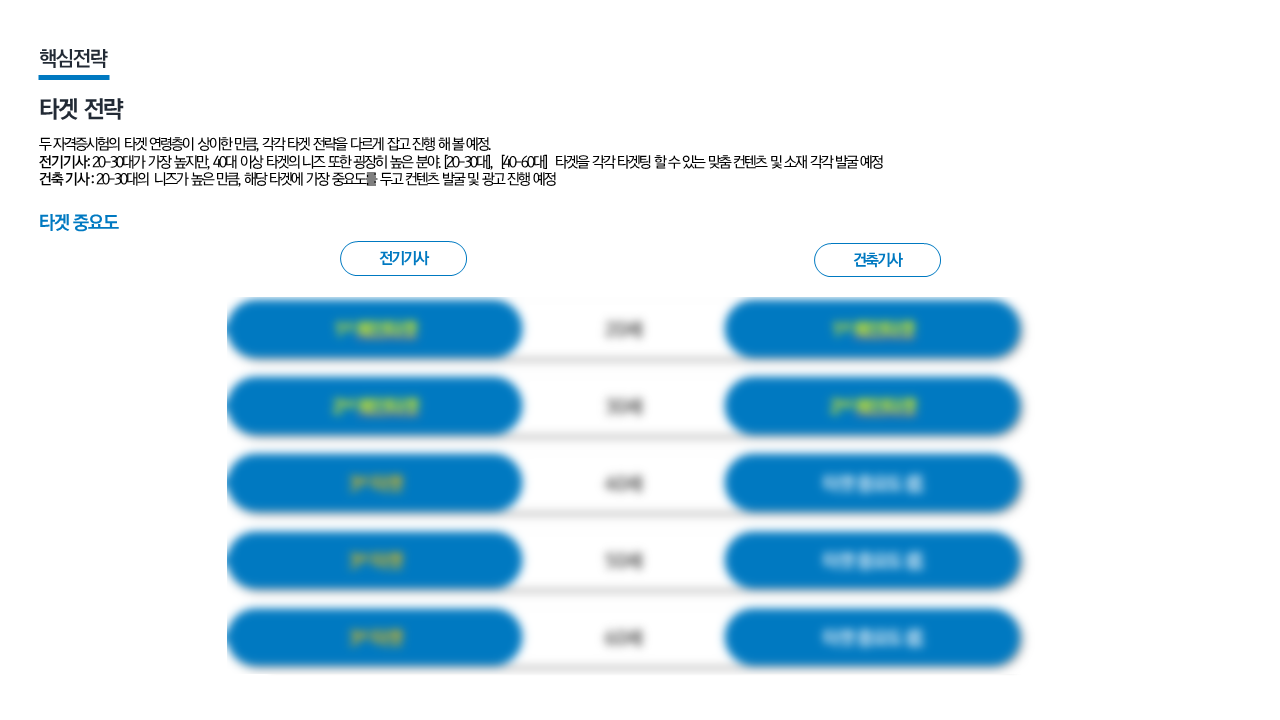 - 카테고리 별 메인 타겟 수립 및 각 메인 전략 수립