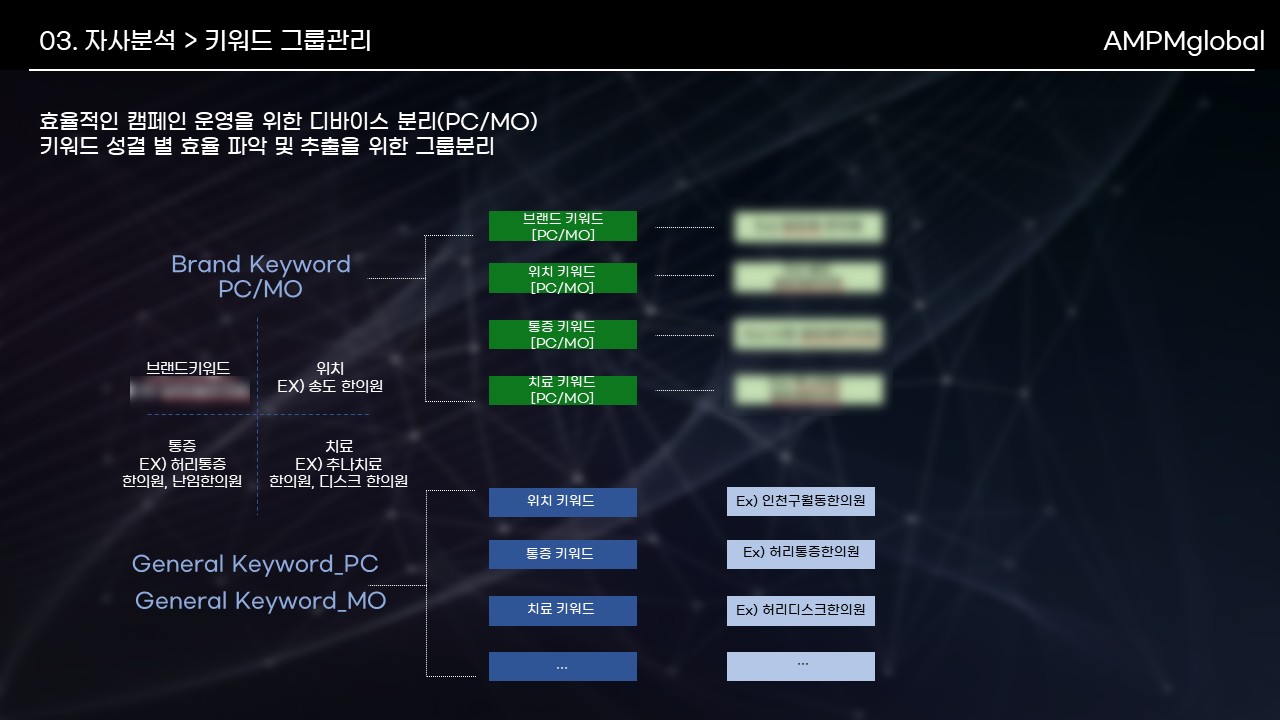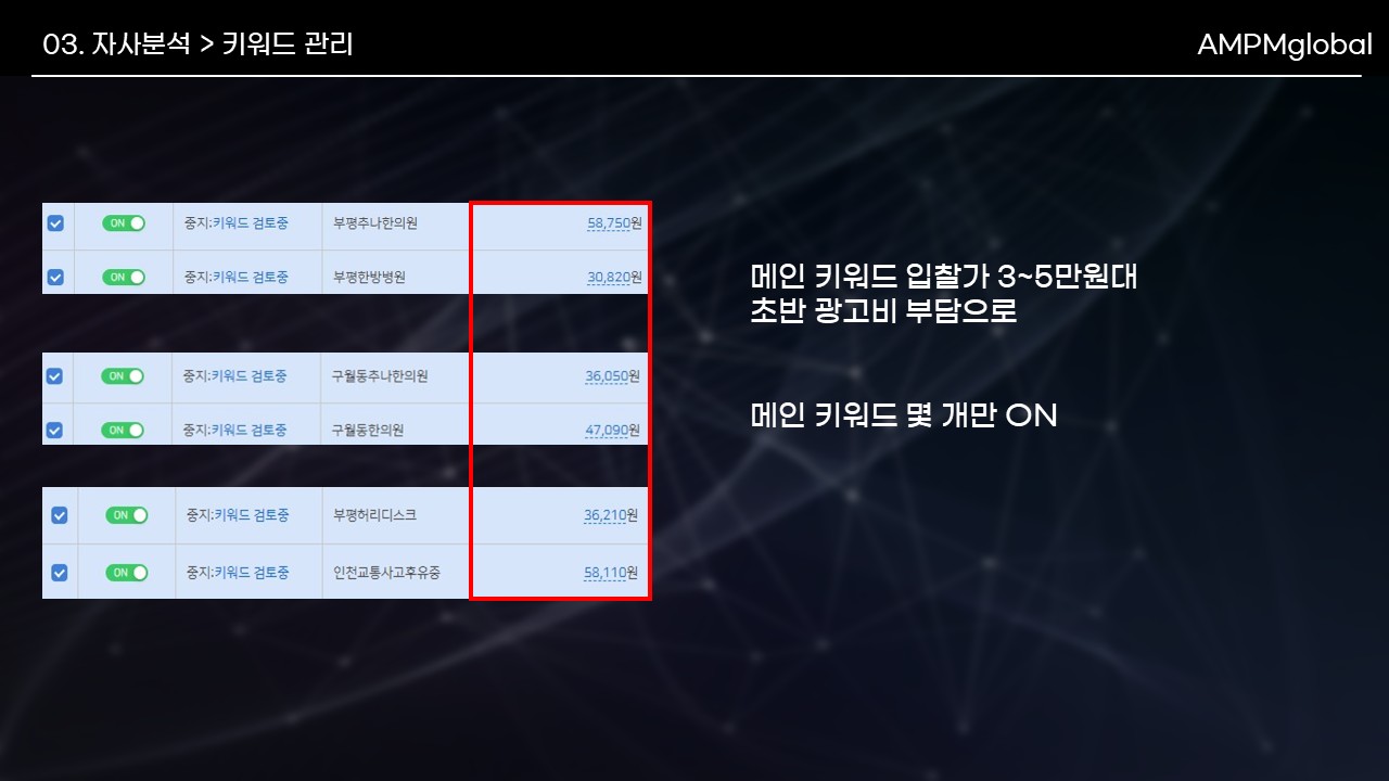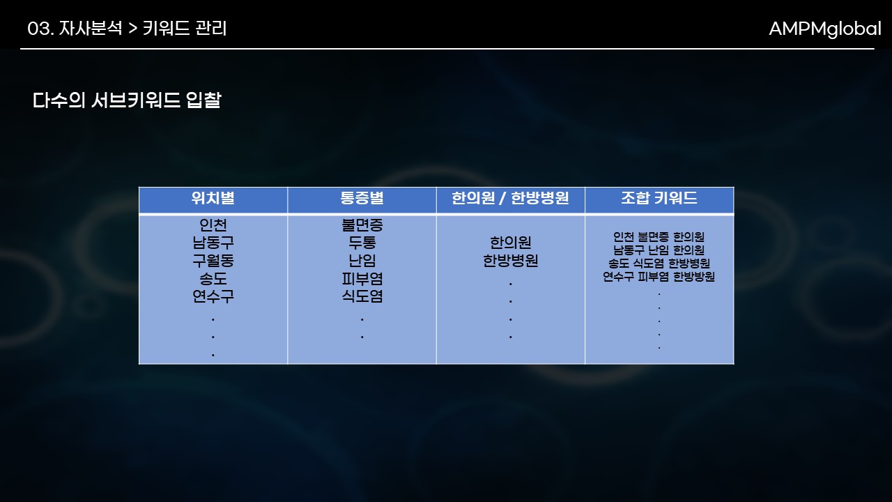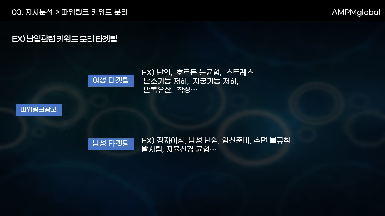 -> 난임키워드 세분화 타겟팅 + 소수 메인키워드 + 다수 서브키워드  사용