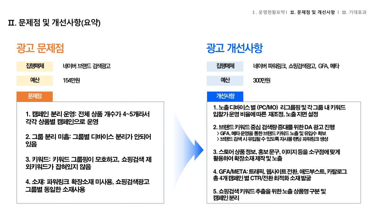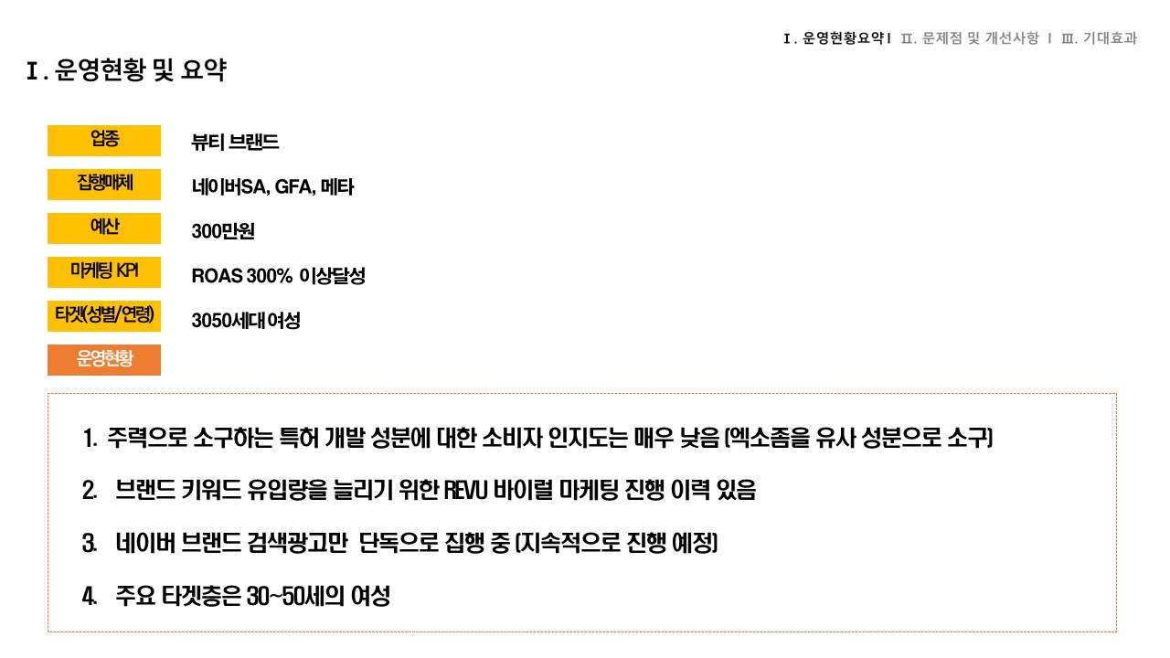집행내용 초기 인지도 제고 및 전환률 향상을 위한 광고 매체 다각화 전략이 요구되는 뷰티 브랜드에 대한 광고 제안 사례입니다.